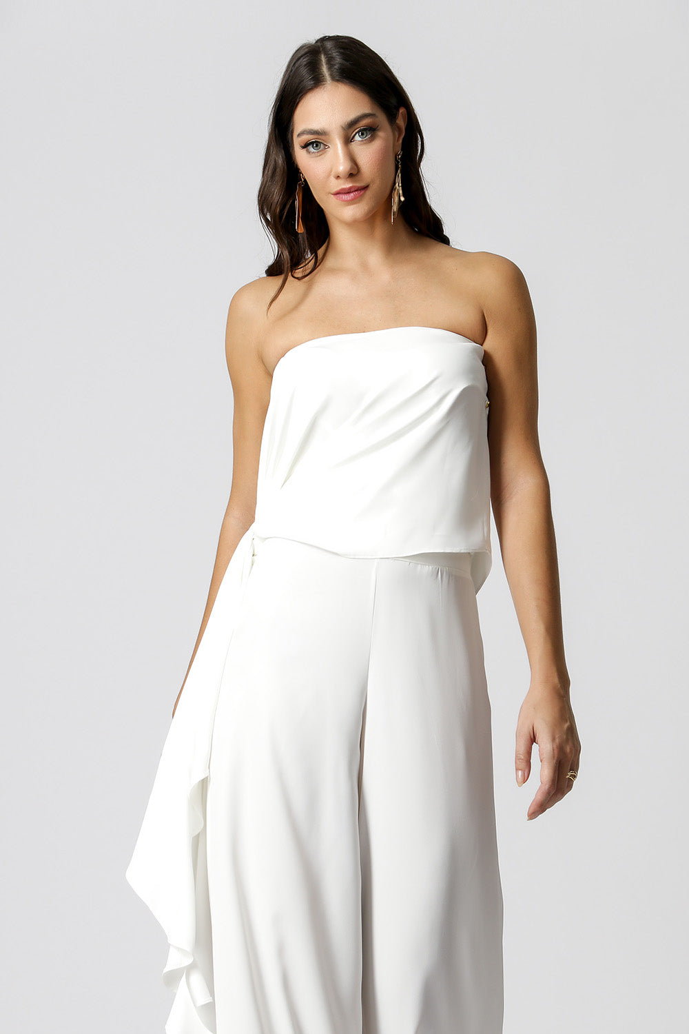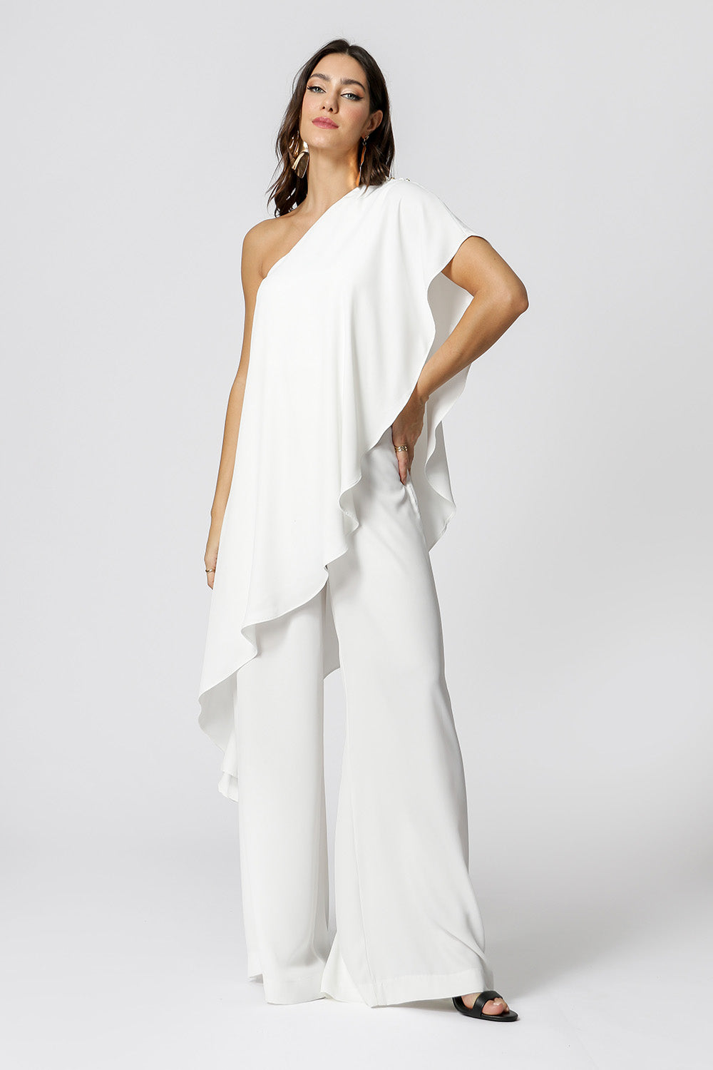 Mono asimétrico con cinturón del mismo tejido y botones en el hombro. Pieza confeccionada en tejido crepe de textura ligera. Modelo súper elegante, chic y diferente ya que se puede usar de diferentes maneras, una gran opción para ocasiones especiales.