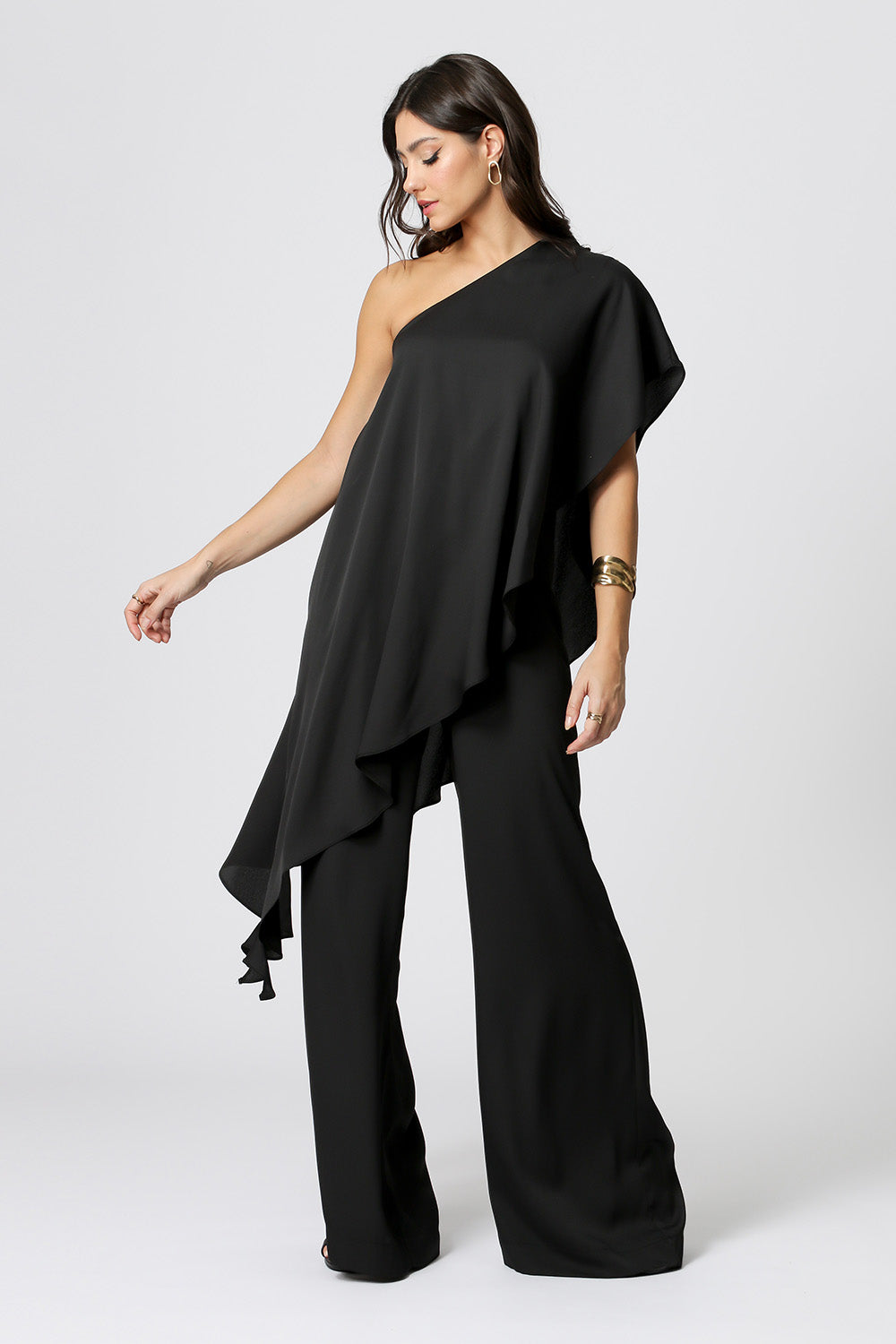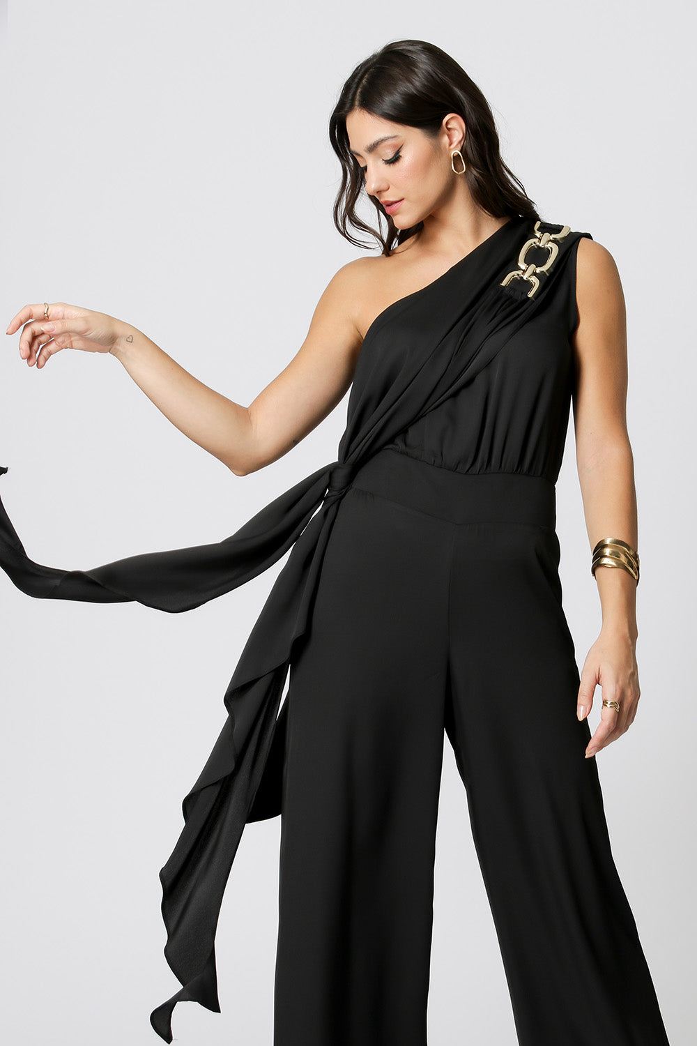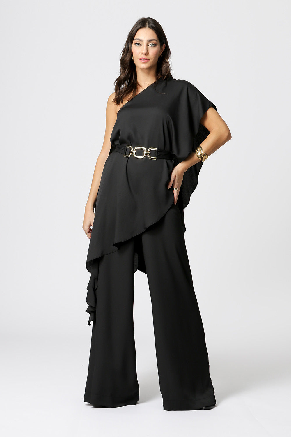 Mono asimétrico con cinturón del mismo tejido y botones en el hombro. Pieza confeccionada en tejido crepe de textura ligera. Modelo súper elegante, chic y diferente ya que se puede utilizar de diferentes maneras, una gran opción para ocasiones especiales.