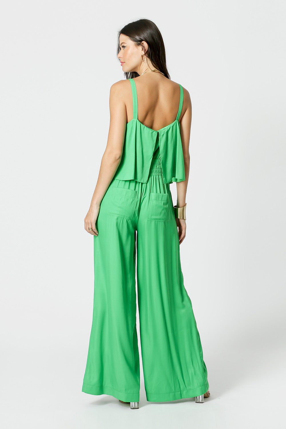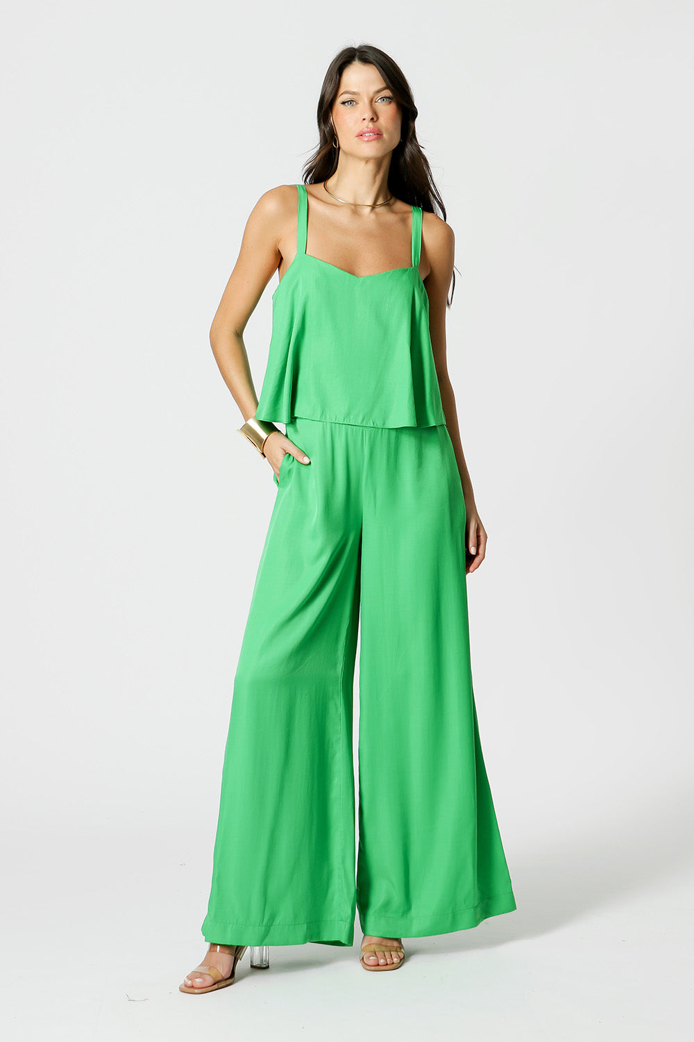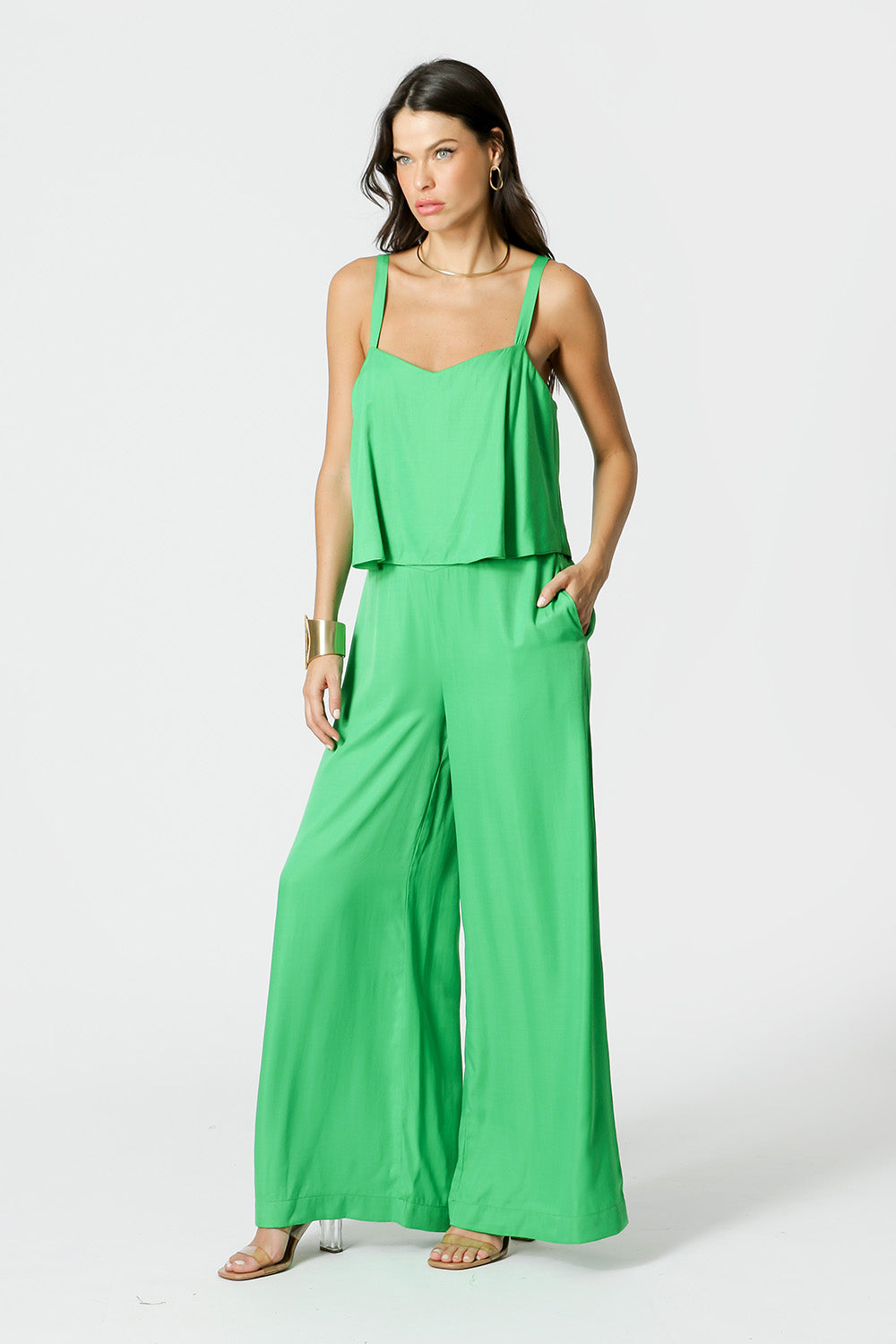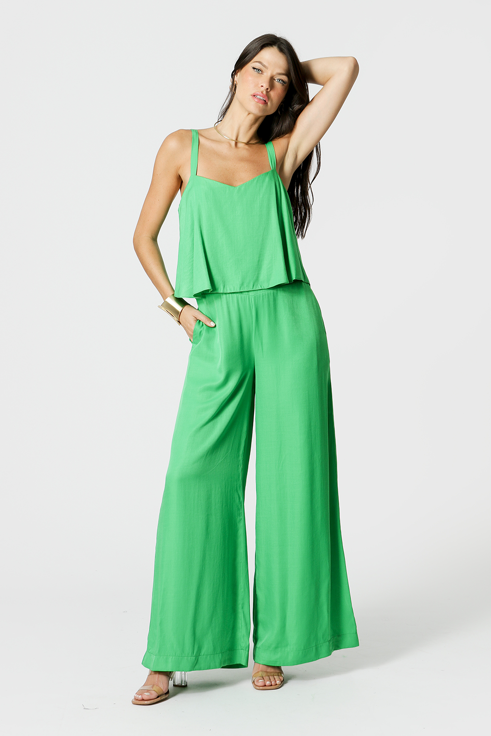 Mono largo palazzo con superposición suelta. Fabricado en tejido satinado. Pieza elegante con un ajuste excelente.