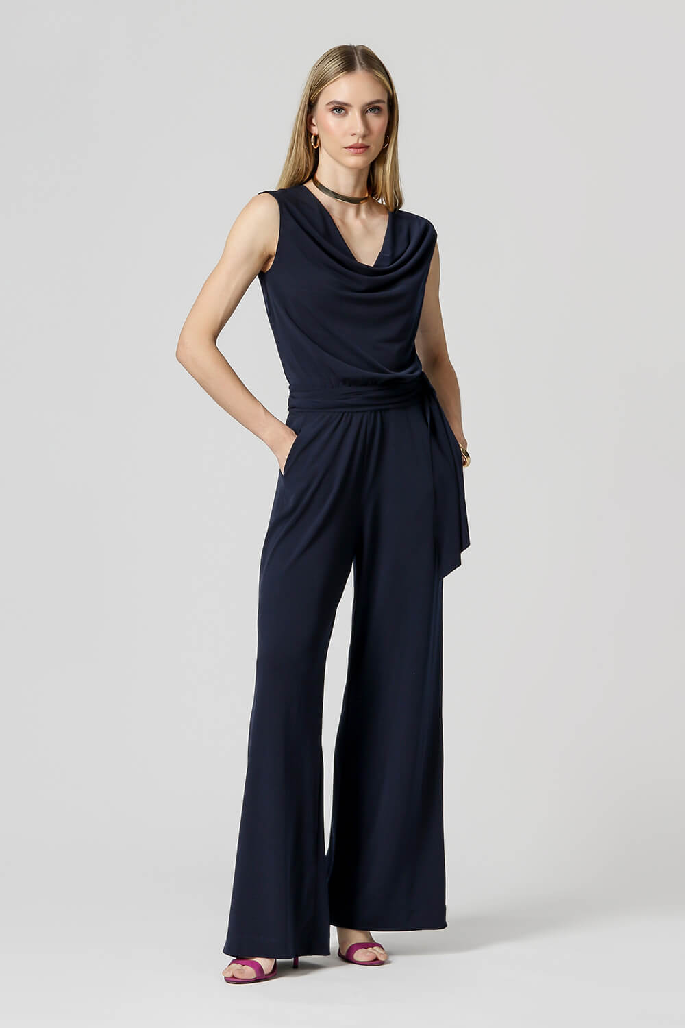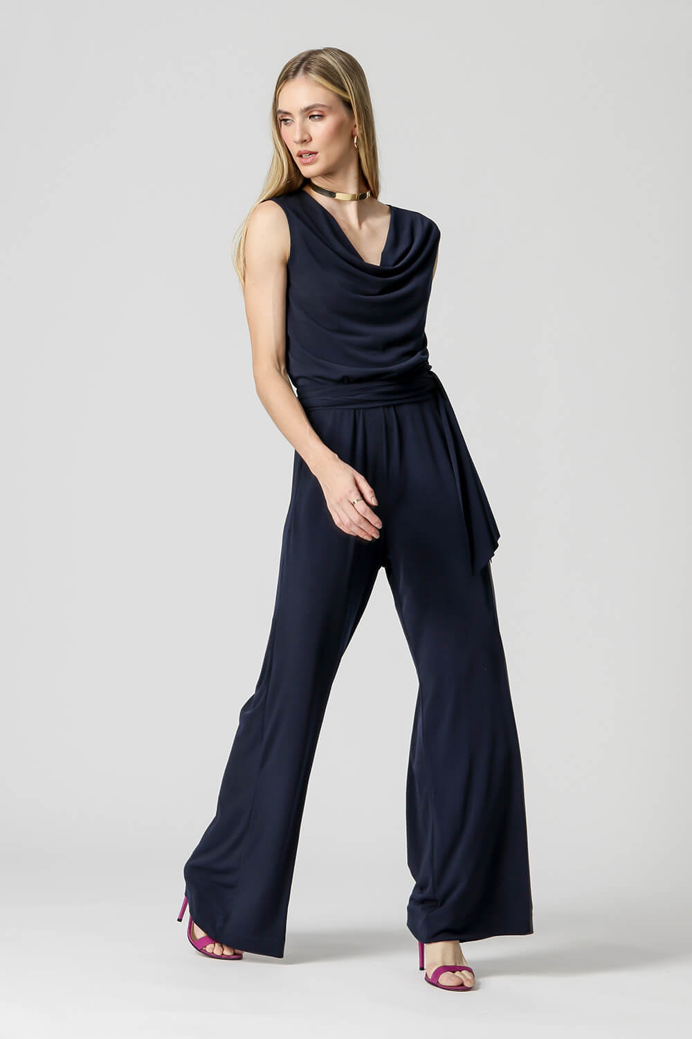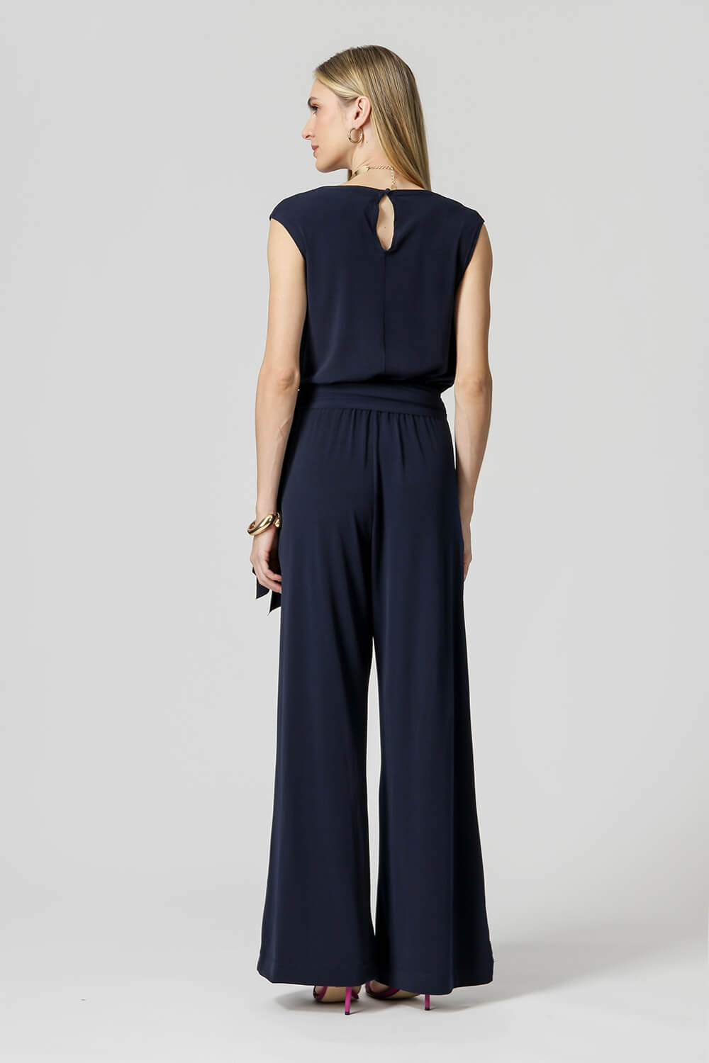 Macacão longo com detalhe faixa, abertura com fechamento de botões nas costas. Modelo ideal para ocasião casual trazendo elegância e conforto no seu look.