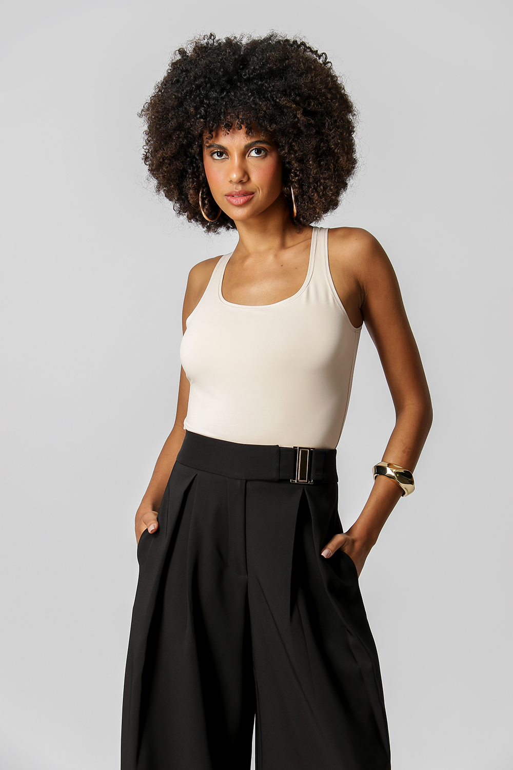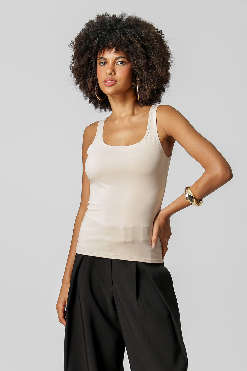 Camiseta de tirantes anchos de corte limpio confeccionada en tejido AMNI. Los básicos imprescindibles que no pueden faltar en tu armario.