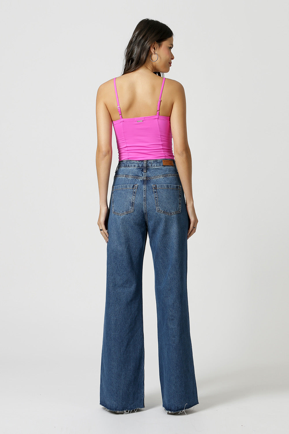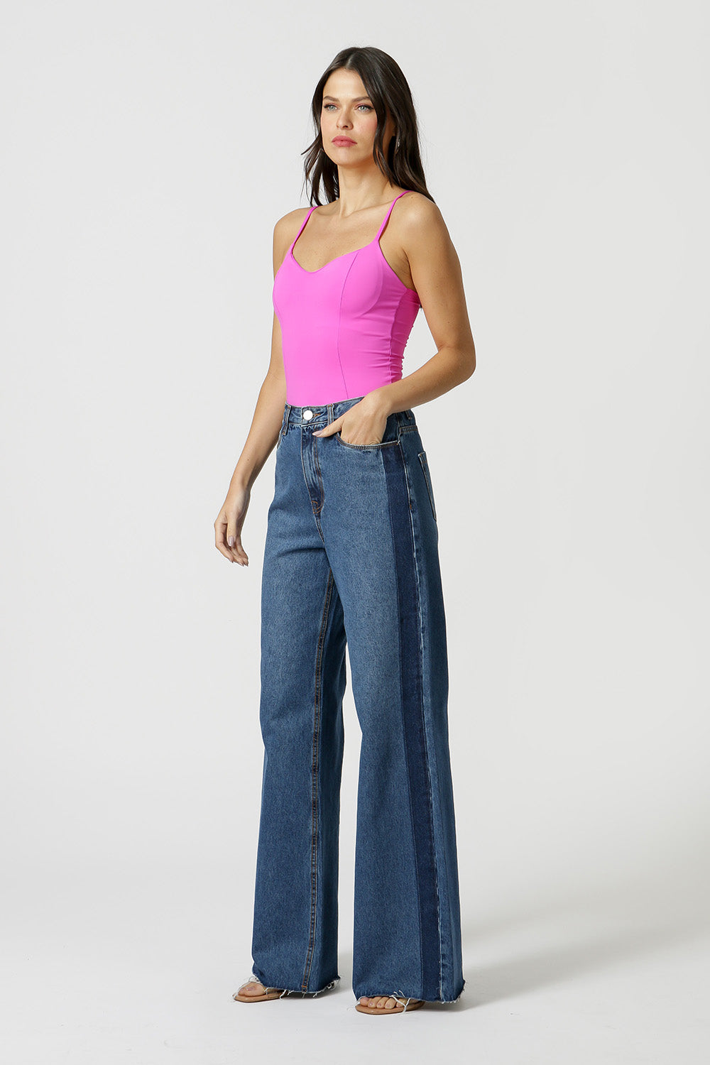 Top básico de poliamida con aberturas - ROSA NEÓN