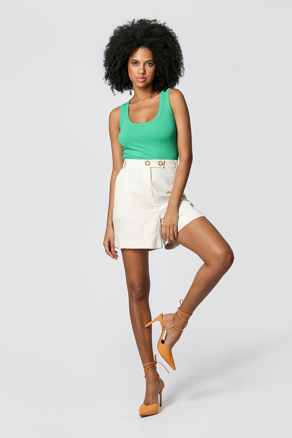 Camiseta básica de tirantes confeccionada en punto canalé y con escote en U que realza el busto. ¡Los básicos para que los tengas en todos los colores!