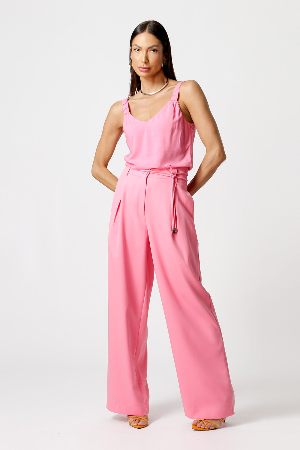 Camiseta de tirantes con pliegues - ROSA CLARO