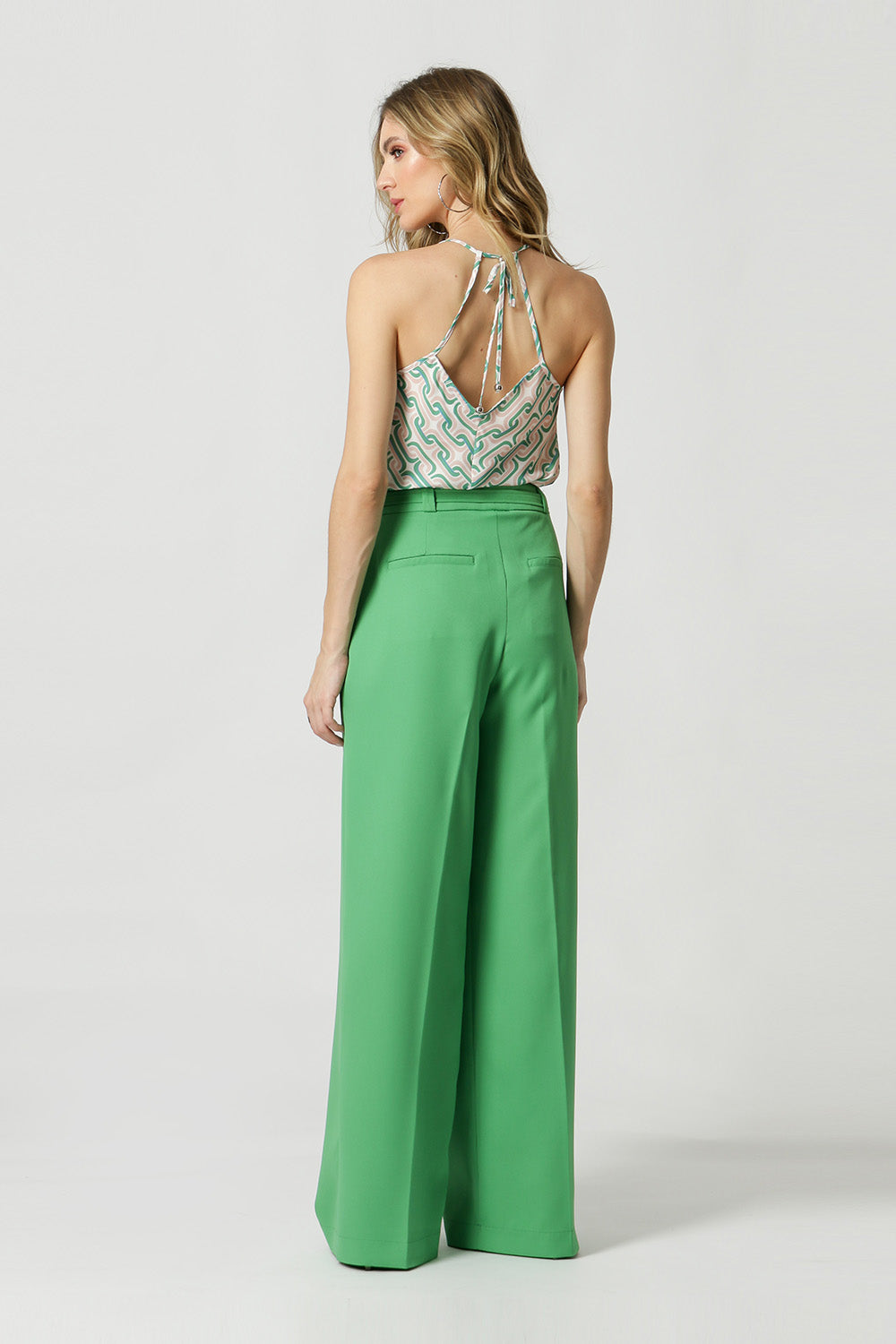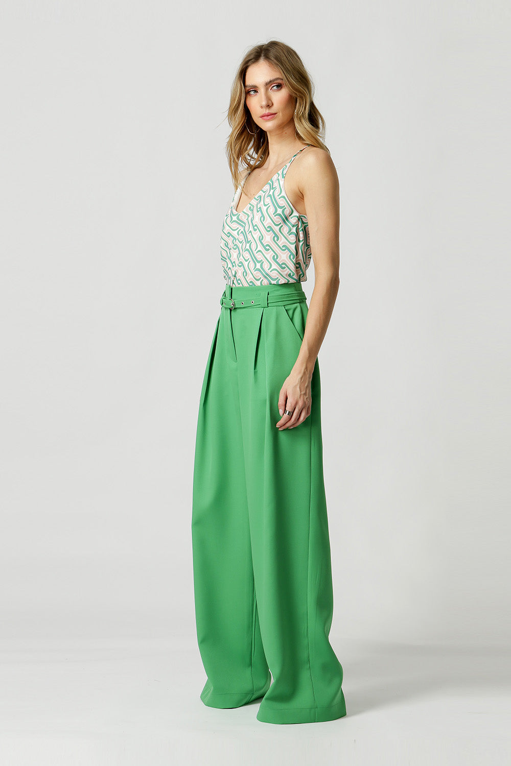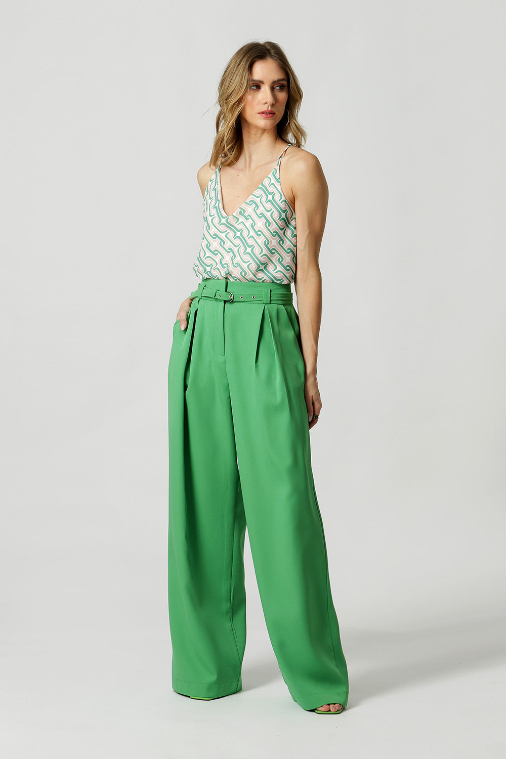 Camiseta sin mangas con tirantes finos y ajustador exclusivo en la espalda. Pieza realizada en crepe fluido estampado. Ideal para un look casual o incluso para el trabajo diario cuando se usa con un blazer largo.