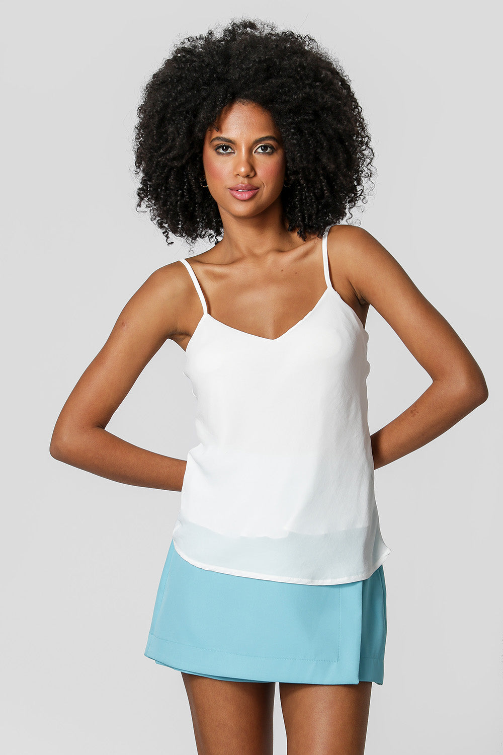 Camiseta básica sin mangas con tirantes y regulador de altura, adecuada para muchas ocasiones. Proporciona comodidad gracias a la caída fluida de la tela liviana.
