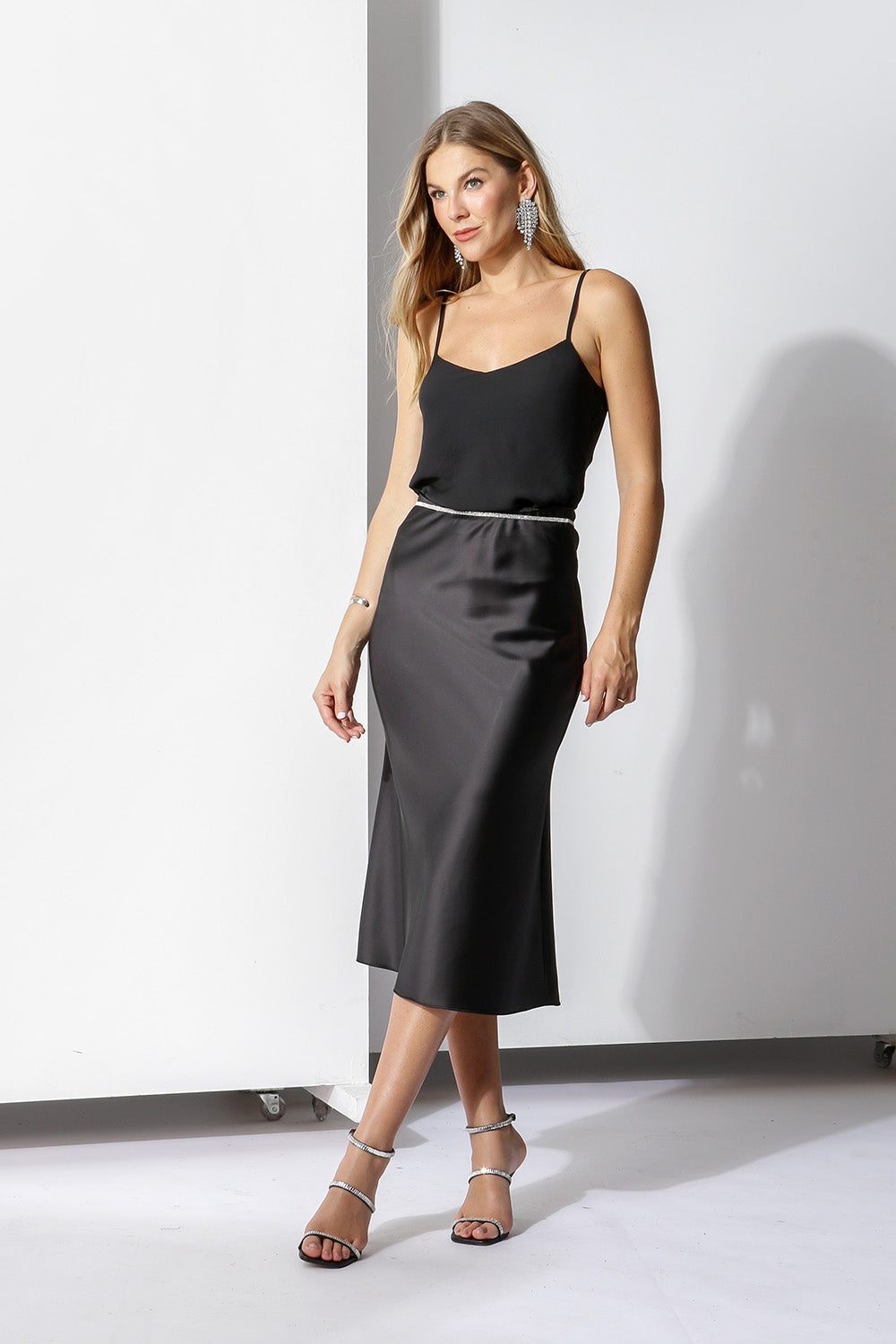 Camiseta básica sin mangas con tirantes y regulador de altura, adecuada para muchas ocasiones. Proporciona comodidad gracias a la caída fluida de la tela liviana.