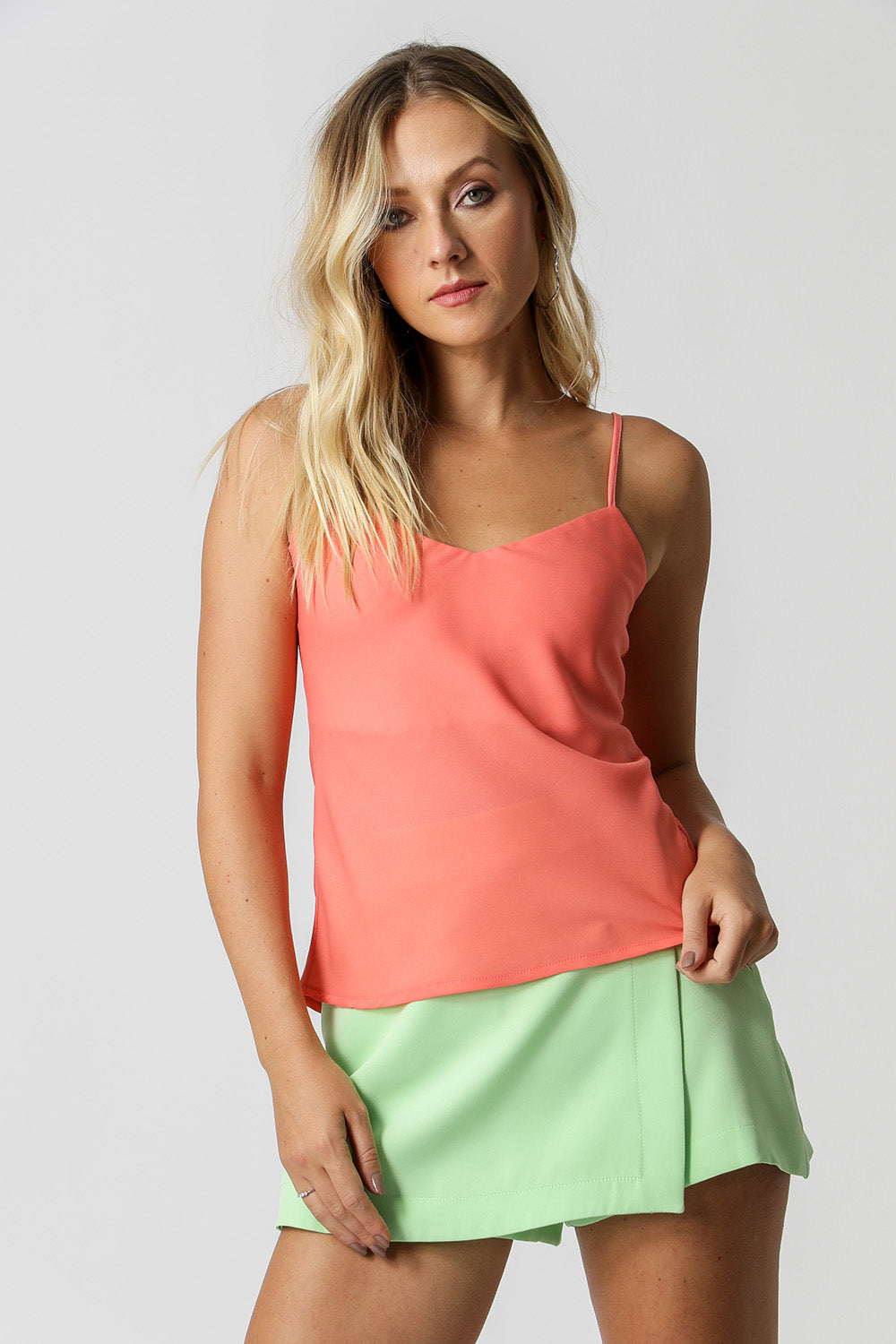 Camiseta básica sin mangas con tirantes y regulador de altura, adecuada para muchas ocasiones. Proporciona comodidad gracias a la caída fluida de la tela liviana.