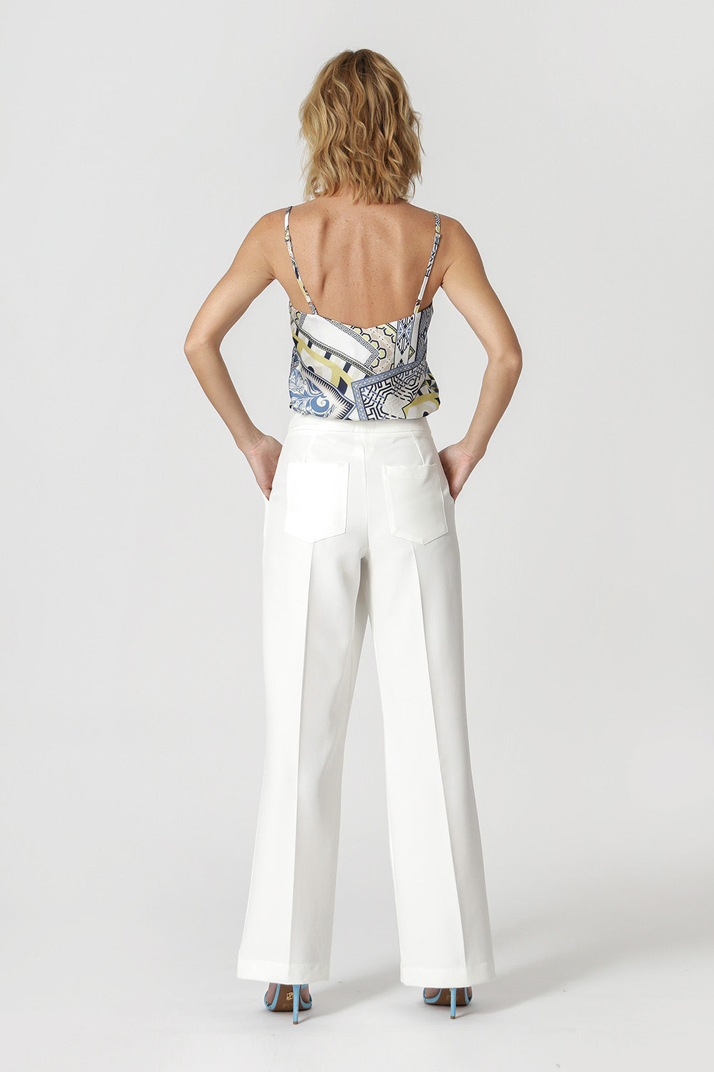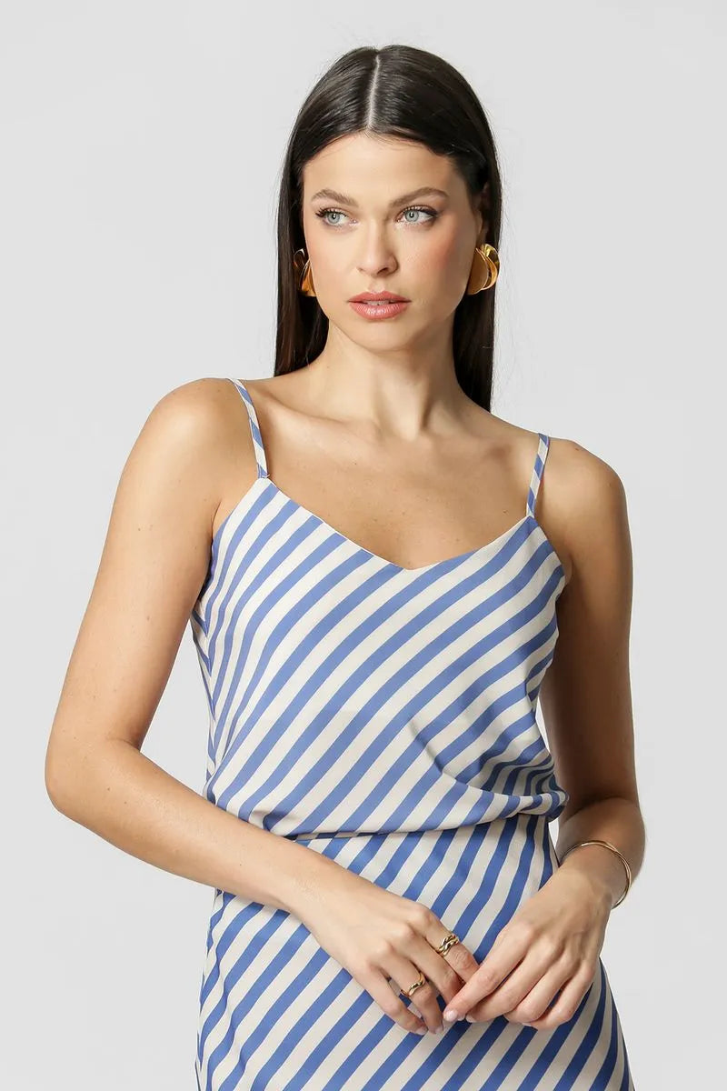 Camiseta de tirantes finos con ajustadores y escote en pico. Fabricado en tejido de satén con burbujas estampado. Una pieza ligera y práctica, perfecta para crear looks este verano.