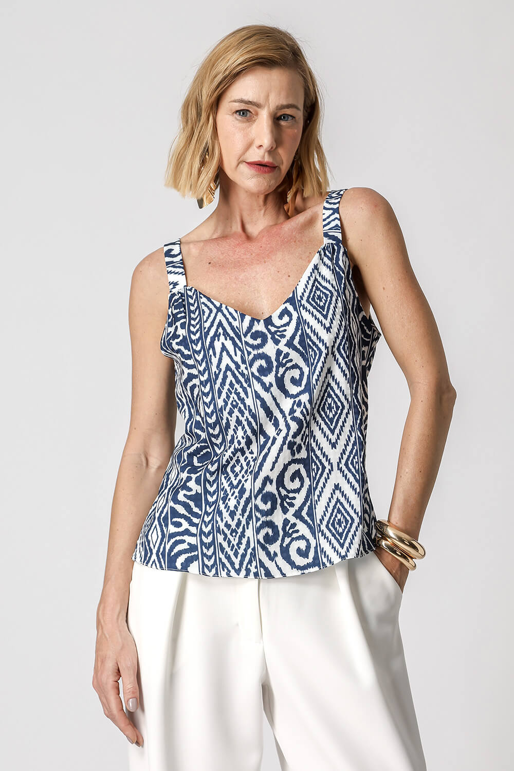 Camiseta de tirantes de lunares confeccionada en satén dobby. Modelo con tirante fruncido. ¡Ideal para looks más casuales!