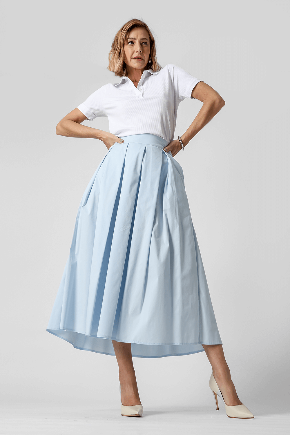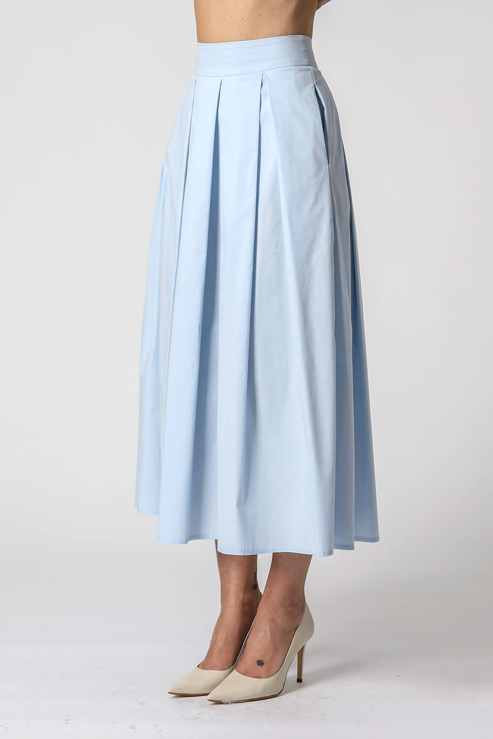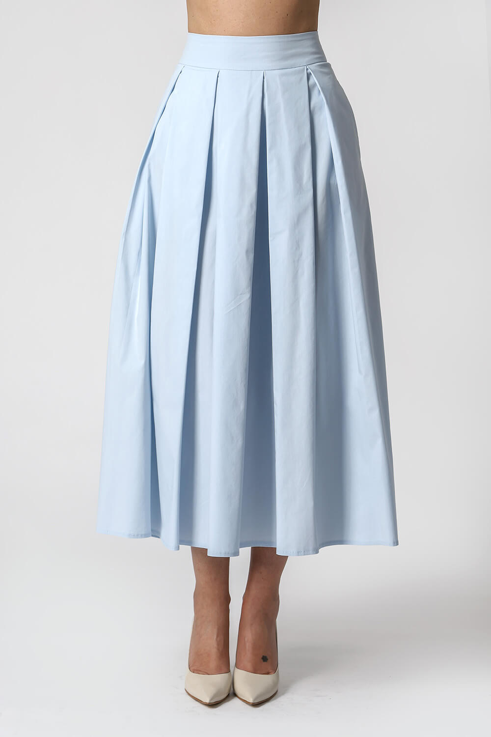 Falda ancha con detalles plisados. Fabricado en tejido Memory. Modelo versátil que puede usarse en diferentes estilos, aportando elegancia y comodidad a tu look.
