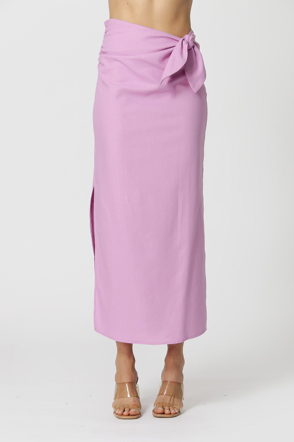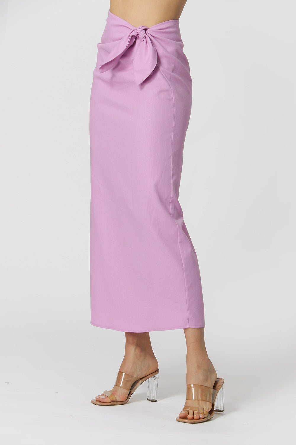 • Falda de lino con nudo lateral - MORADO CLARO