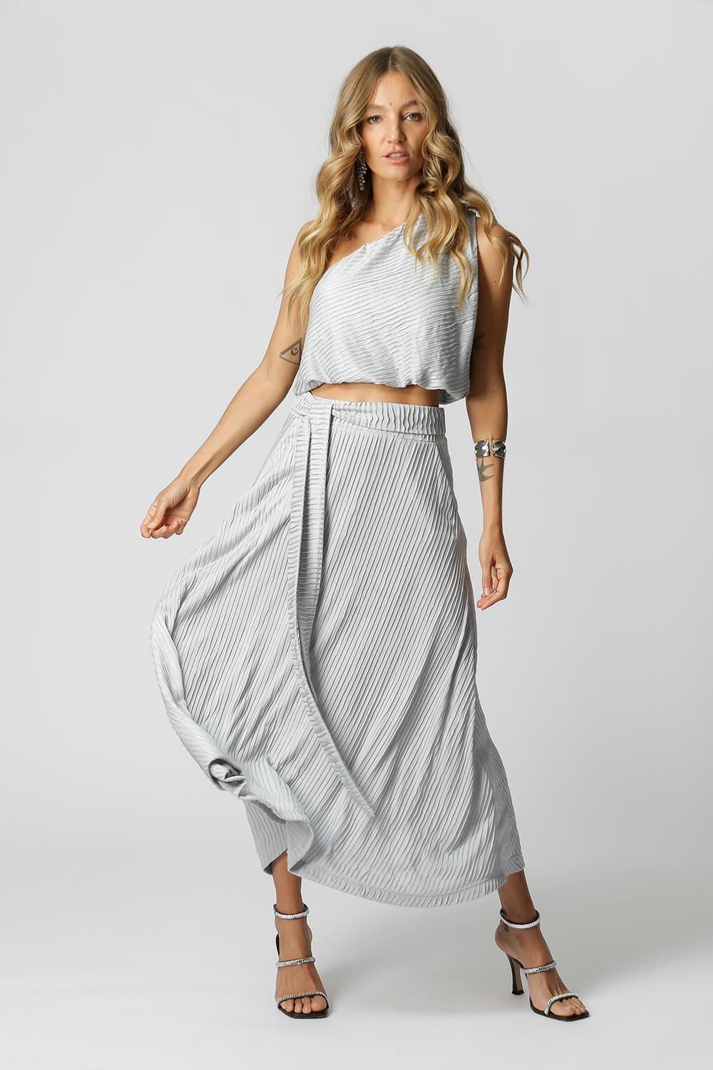 Falda con textura acanalada, modelo mediano ideal para crear auténticos looks de noche, ¡anímate!