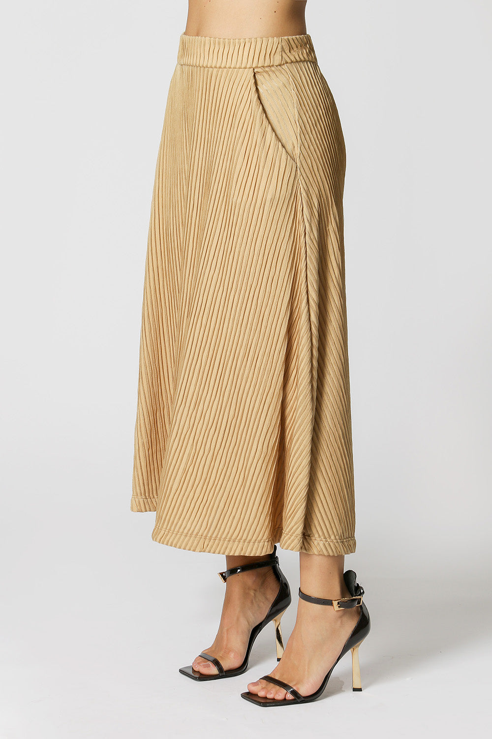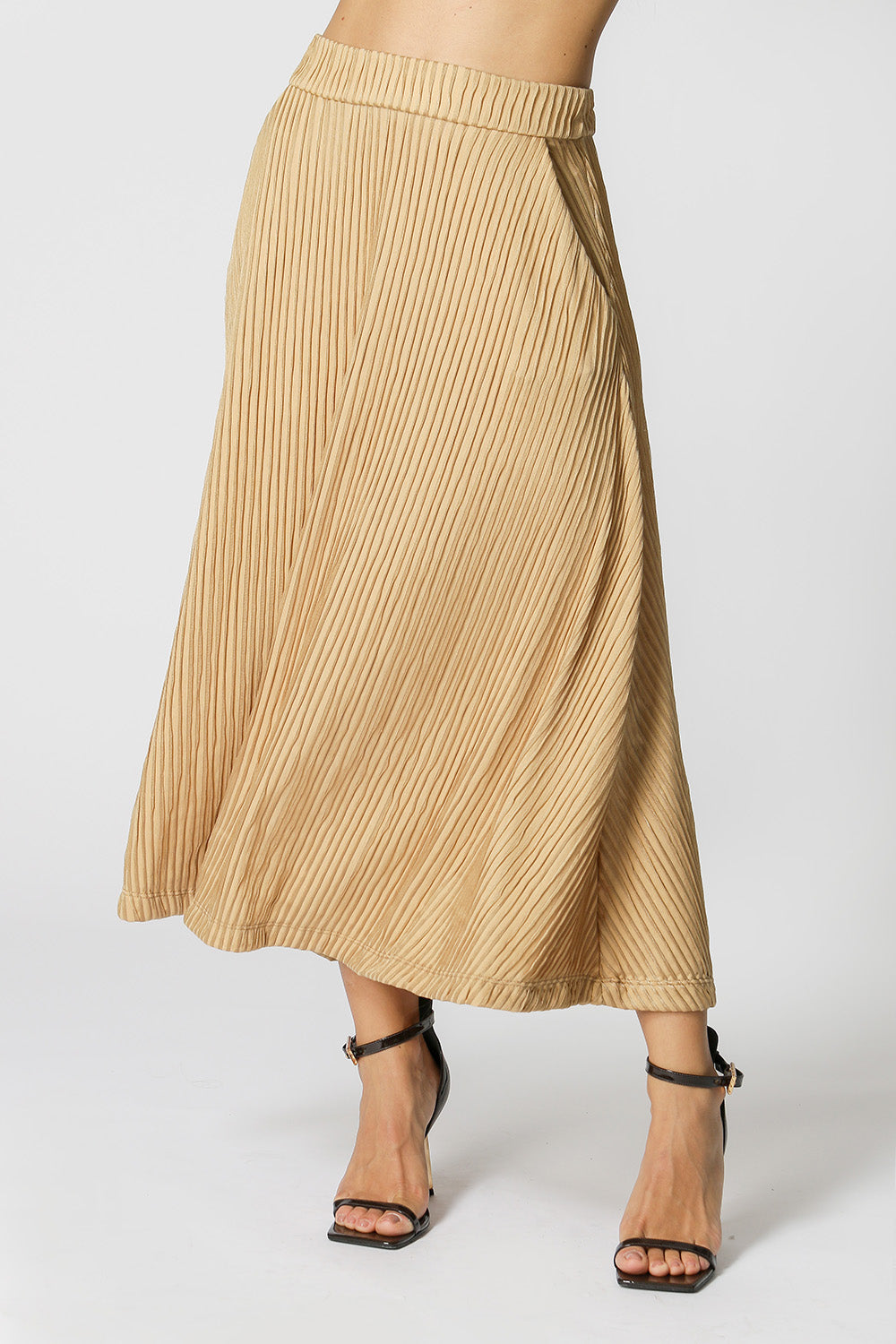 Falda con textura acanalada, modelo mediano ideal para crear auténticos looks de noche, ¡anímate!