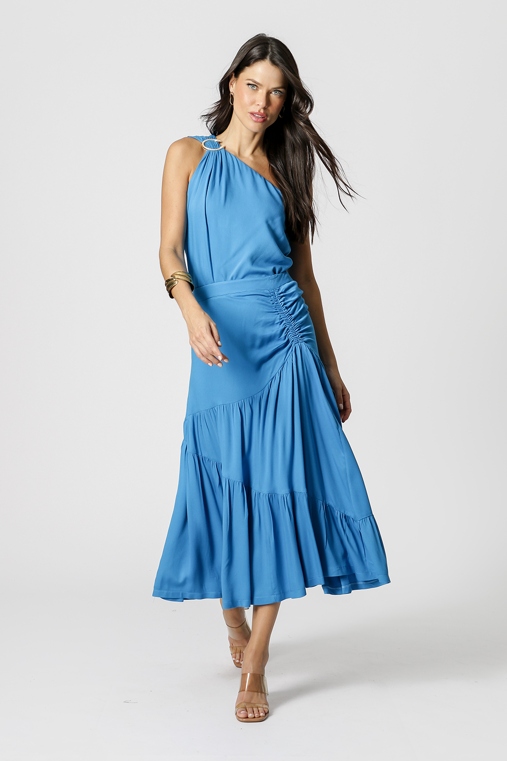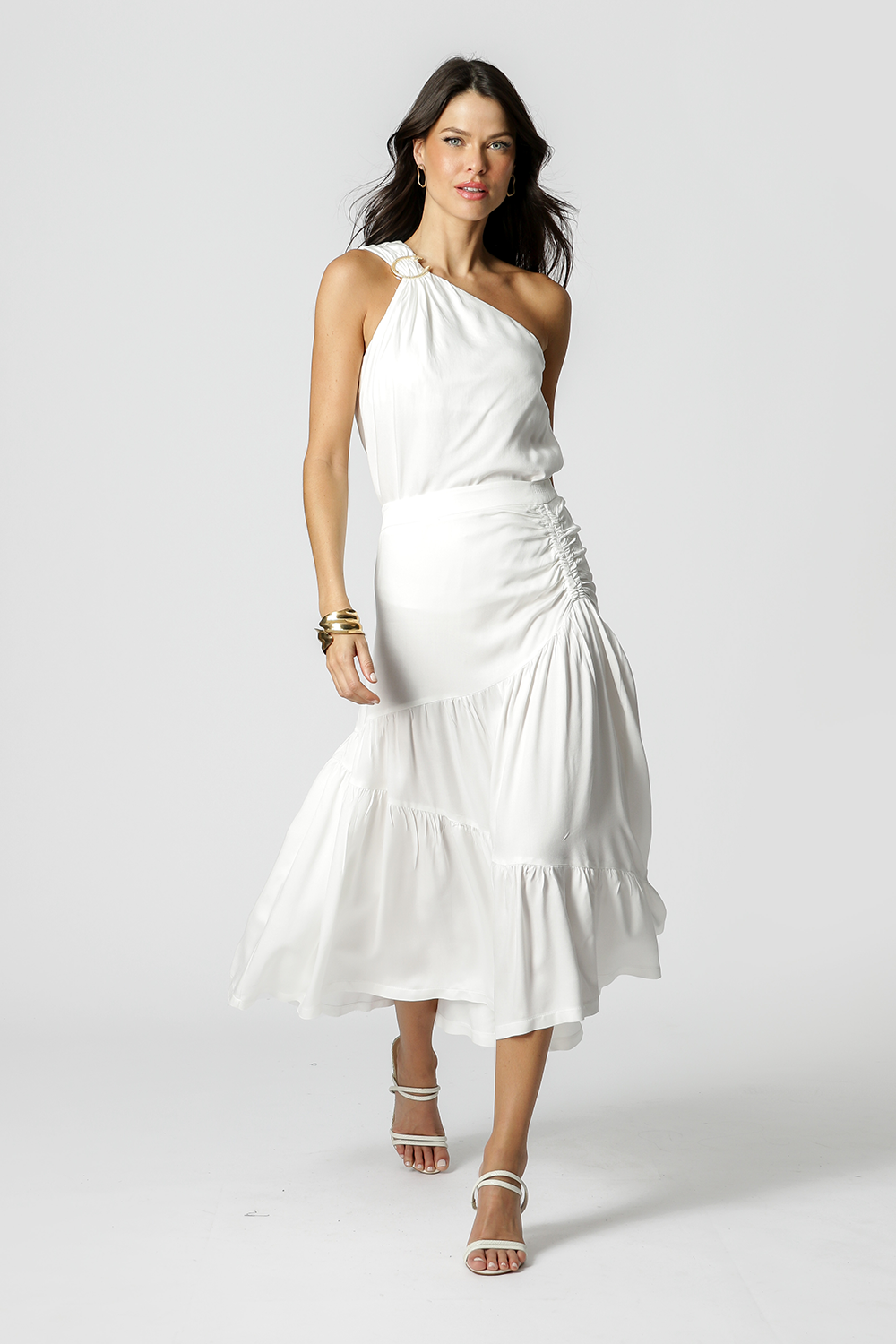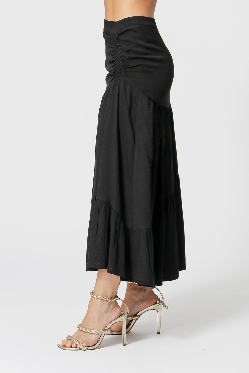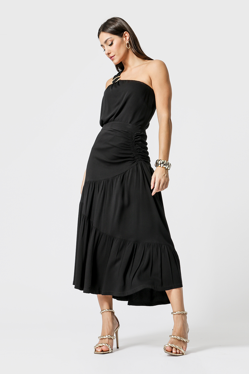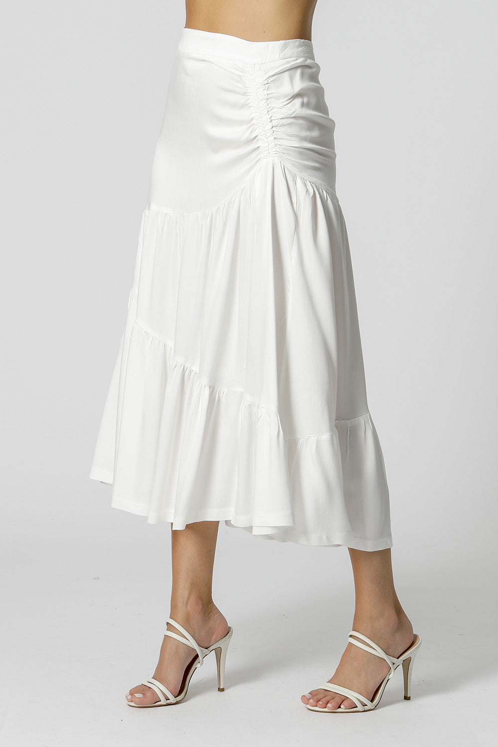 Saia com detalhe de franzido e colissê. Um modelo confeccionada em tecido Viscose fluída. Uma peça com caimento leve solto e cheia de charme que vai te proporcionar vários looks lindo aposte.