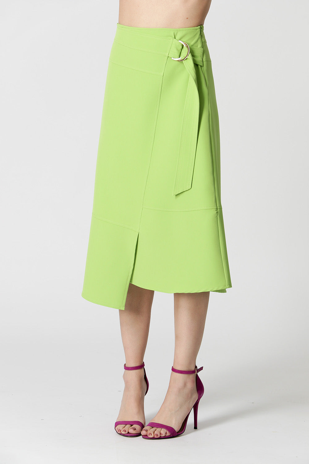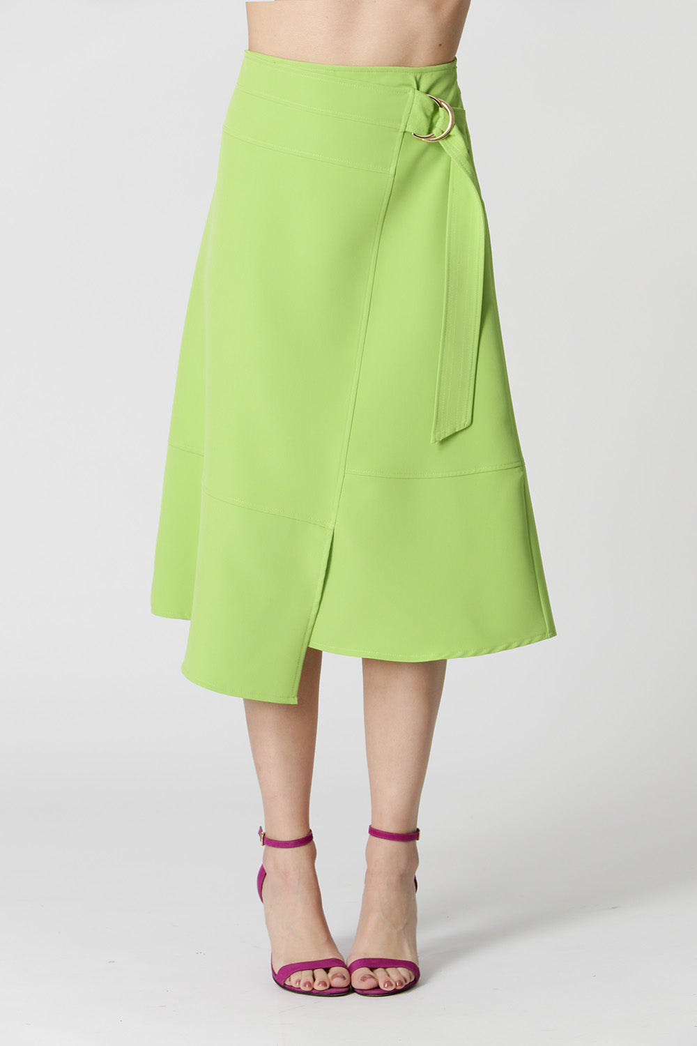 Saia envelope com detalhe de faixa com fivela. Peça confeccionada em tecido alfaiataria. Um peça elegante e ótima proposta para mood work.