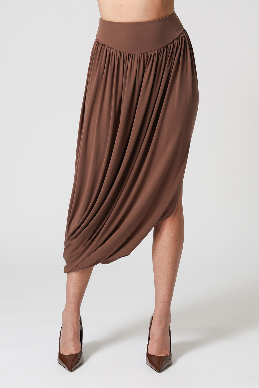 Saia feminina em malha Ity, com franzido, barra torcida e fenda lateral que valoriza a silhueta. Leve, confortável e cheia de estilo perfeita para compor looks modernos.