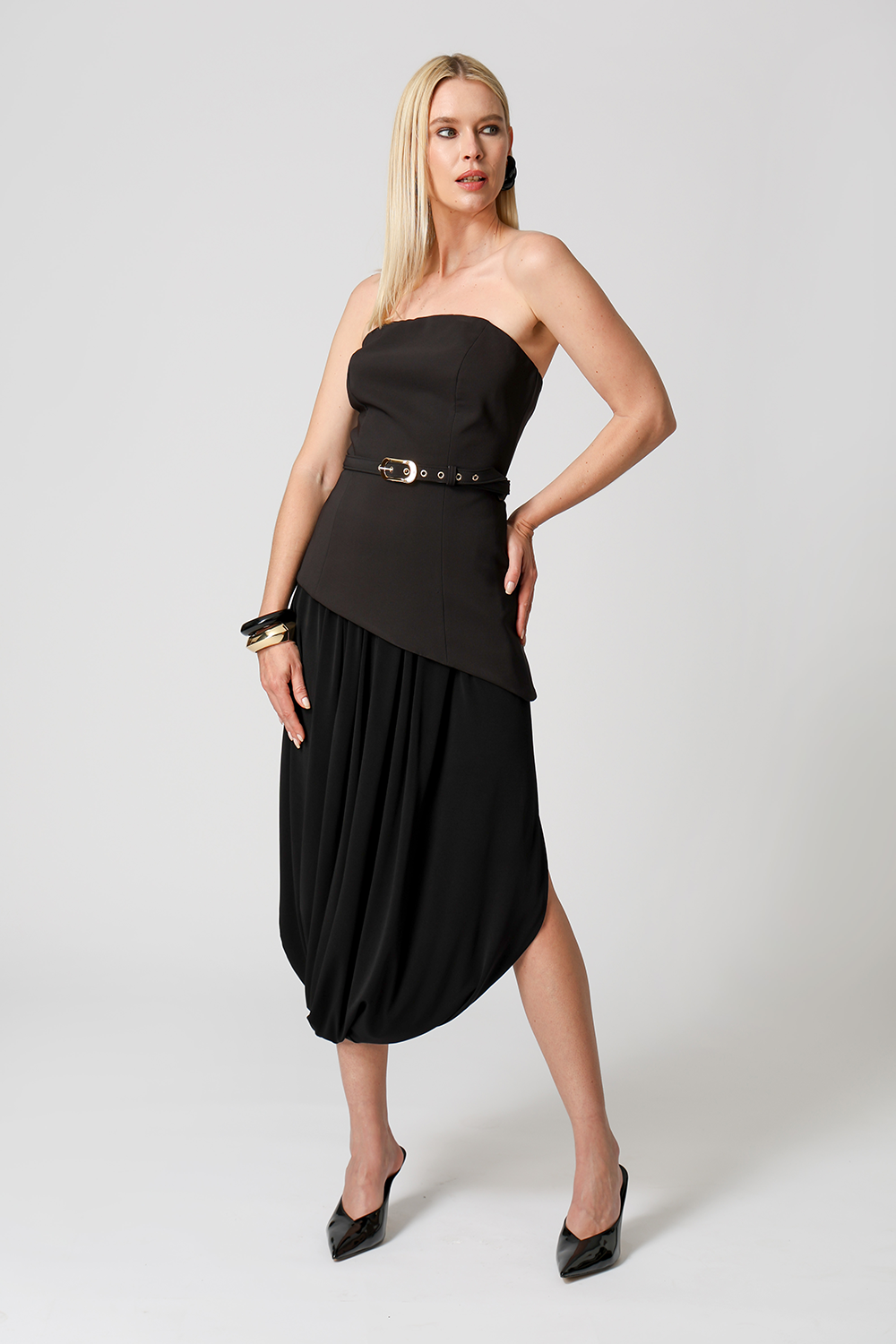 Saia feminina em malha Ity, com franzido, barra torcida e fenda lateral que valoriza a silhueta. Leve, confortável e cheia de estilo perfeita para compor looks modernos.