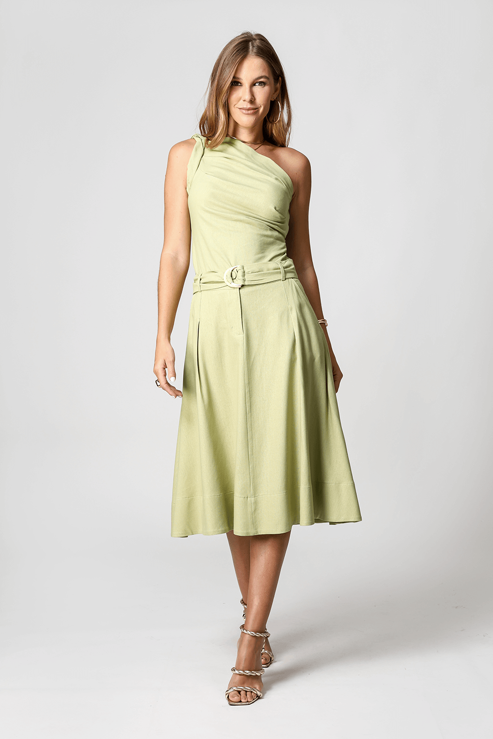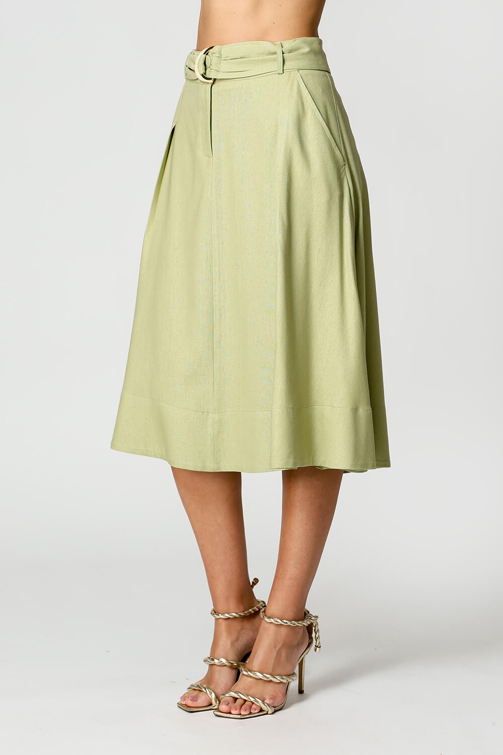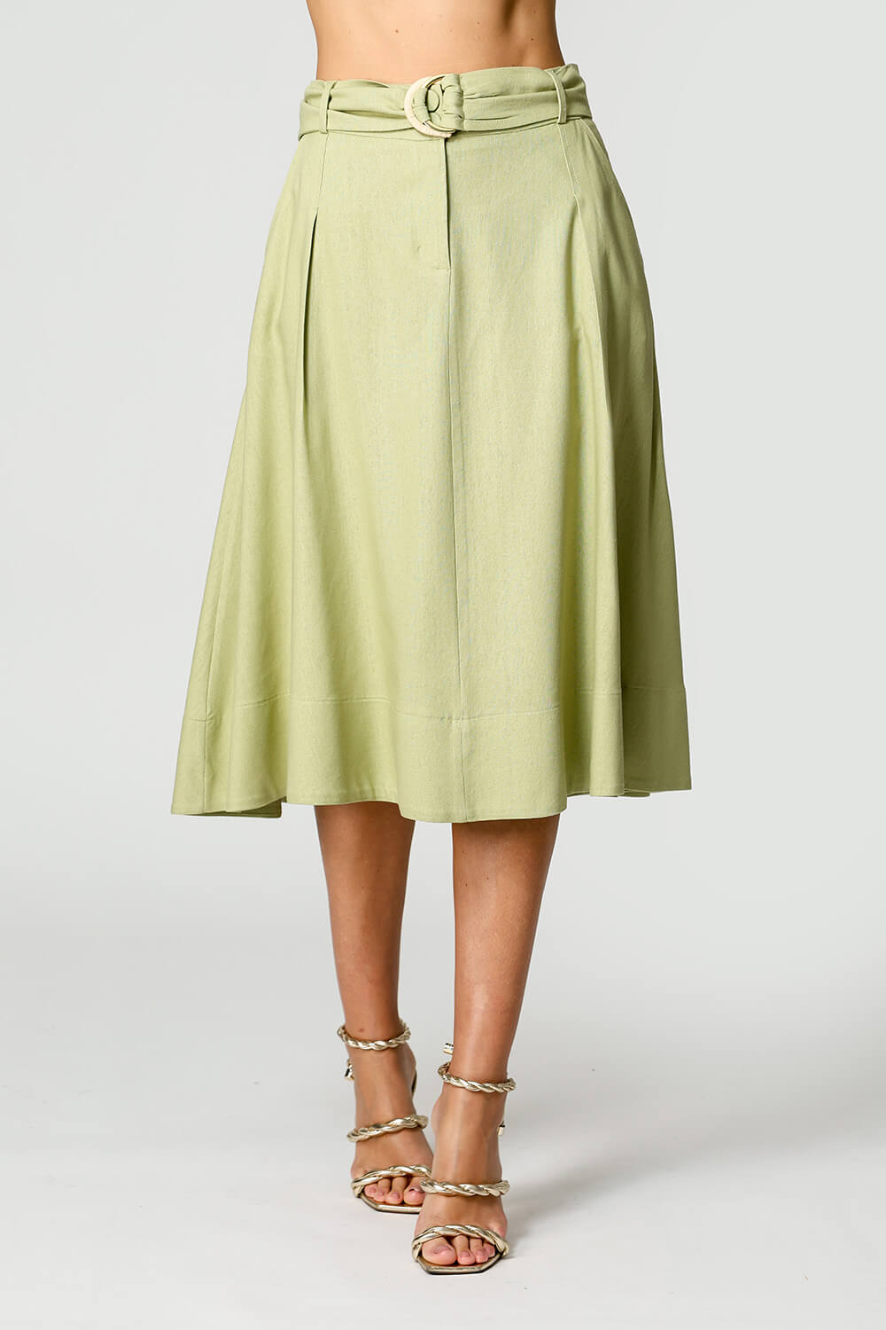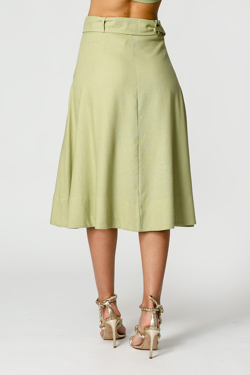 Falda de lino con cinturón de doble hebilla. Pieza elegante y atemporal.