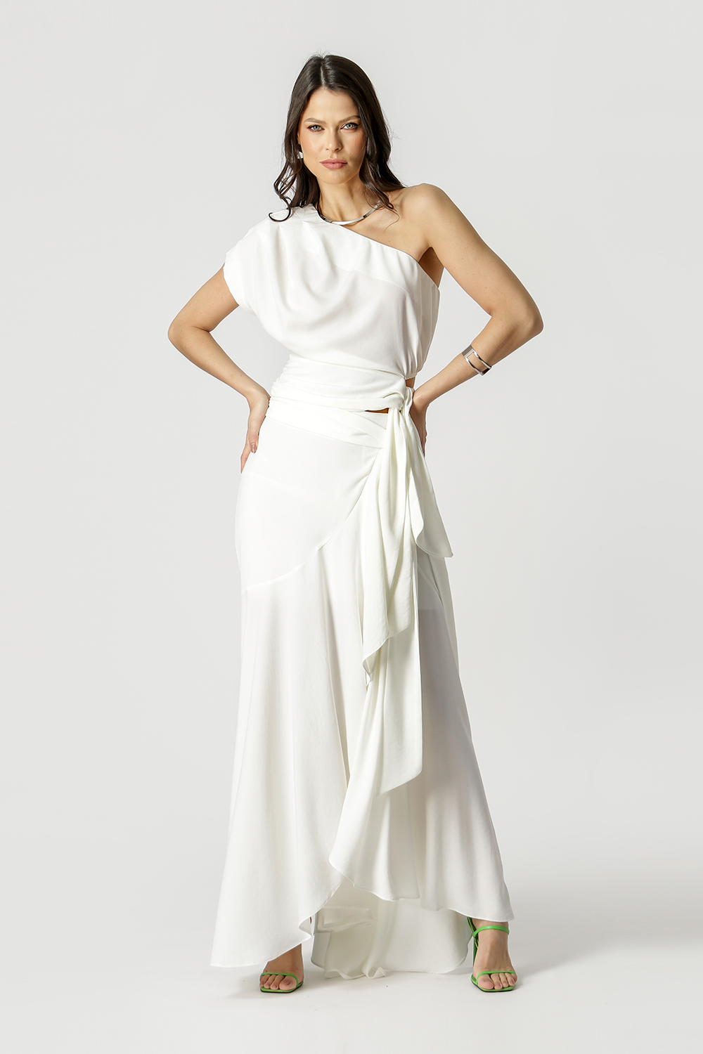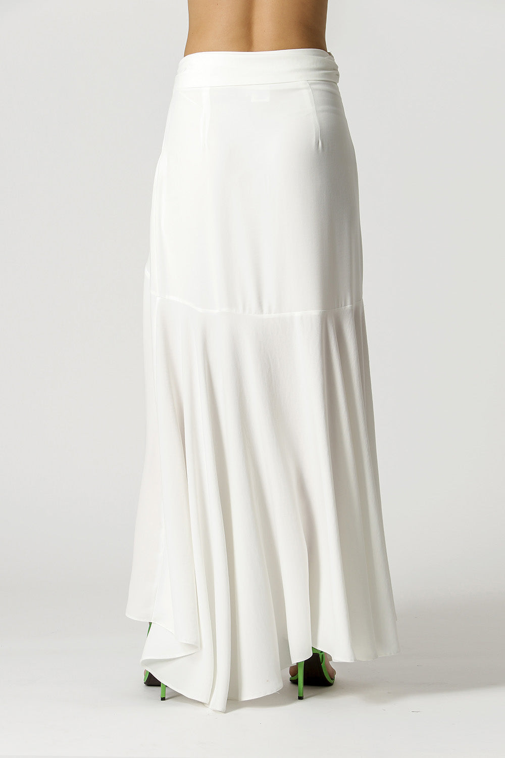 Falda larga con detalles de volantes. Elaborado a partir de crepe. Pieza ideal para un look de verano.