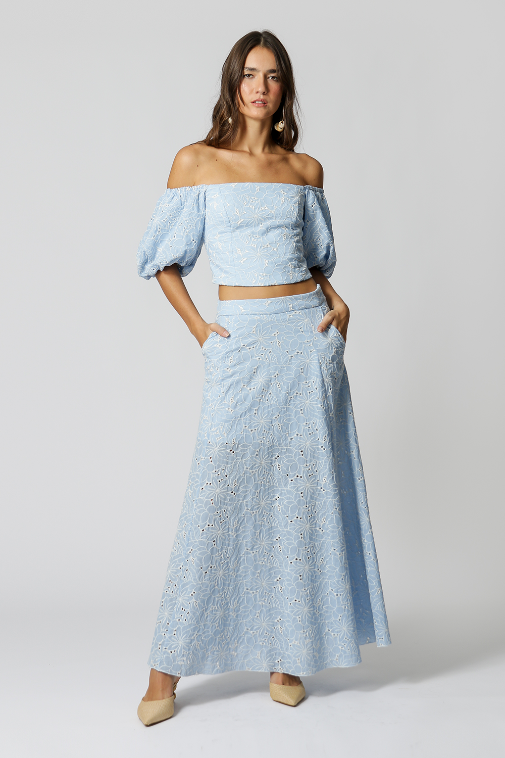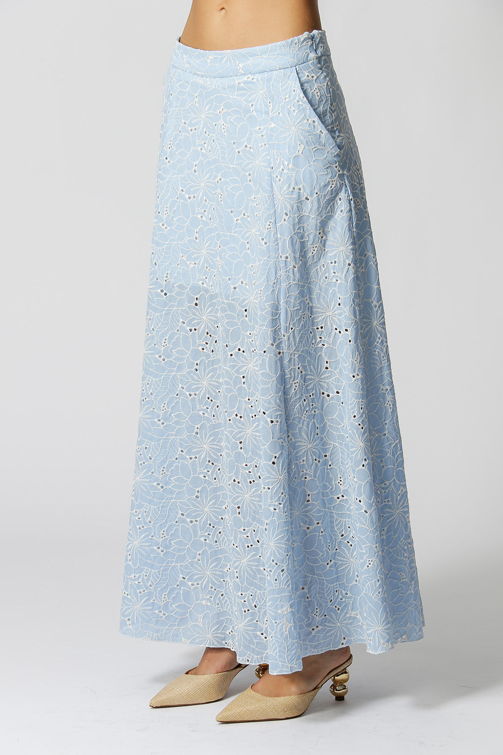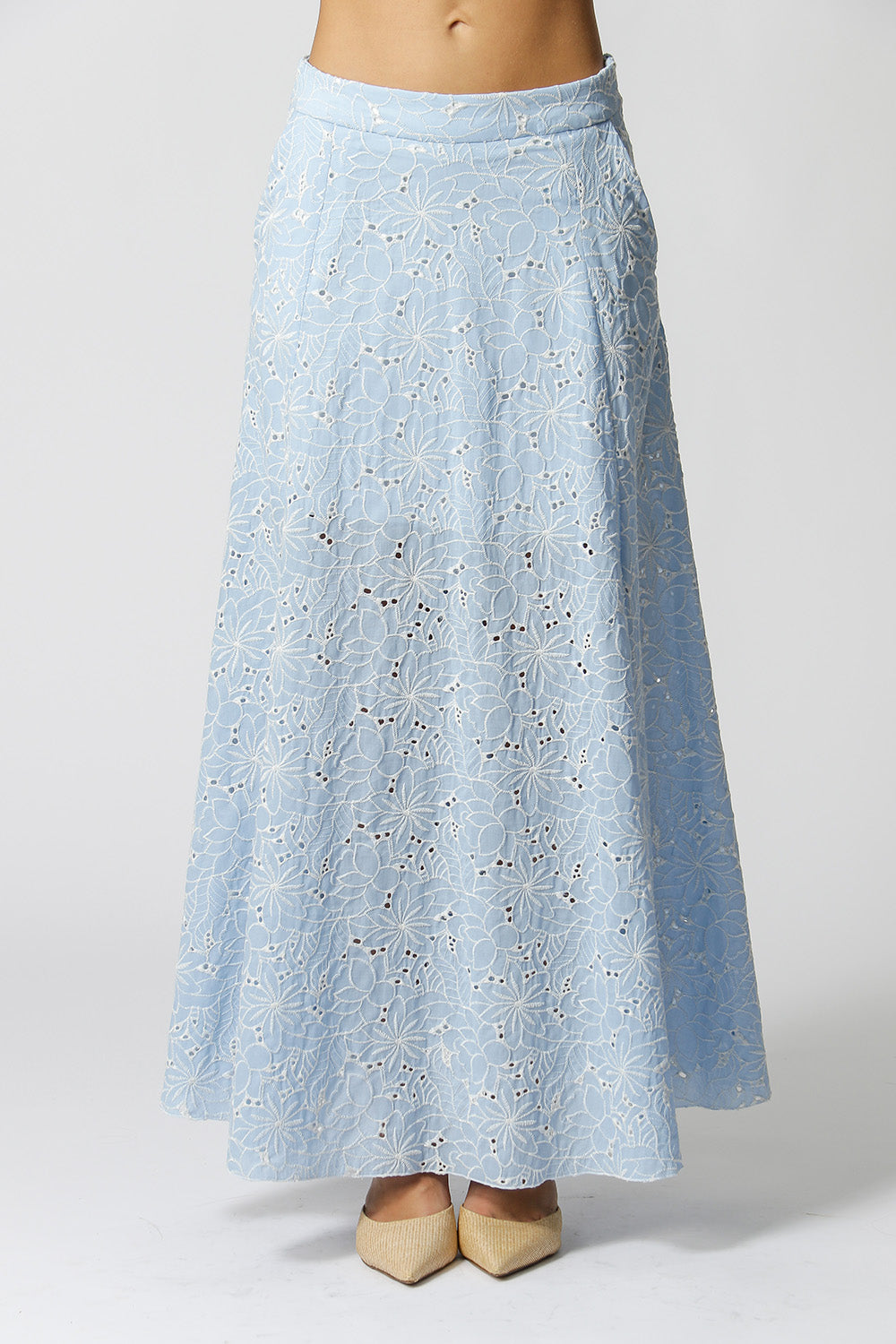 Falda larga bordada de laise con corte A. ¡Pieza imprescindible para el verano!