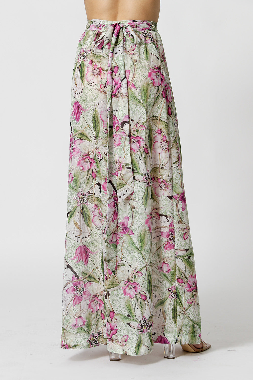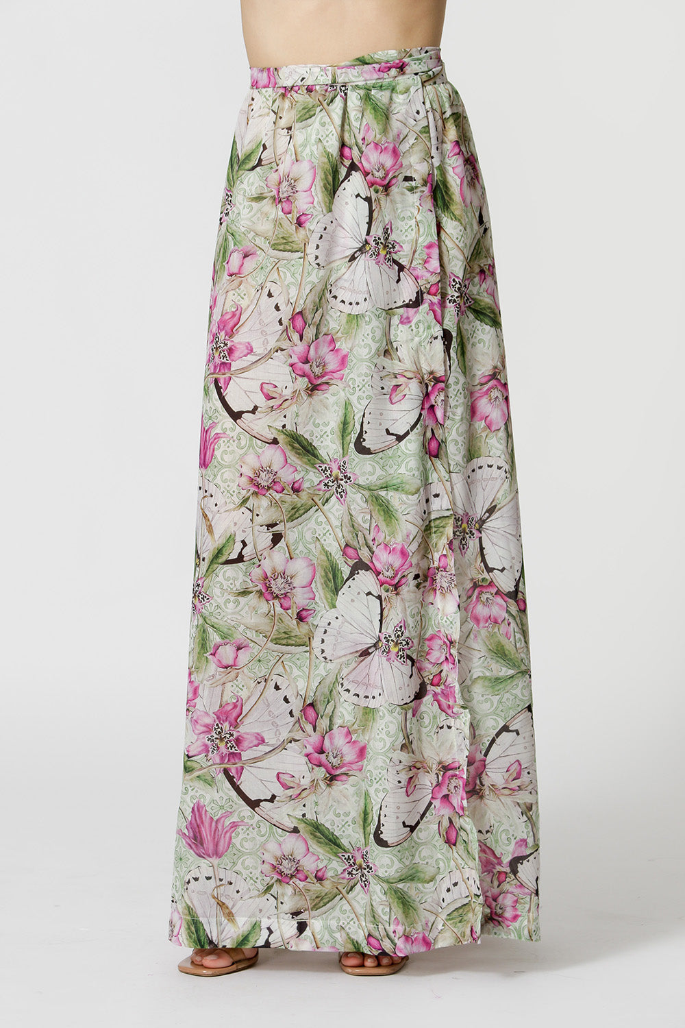 Falda larga tipo pañuelo confeccionada en Voile Glass, viene con pantalón corto con cinturilla elástica. Una pieza nada básica y muy fresca para el verano.