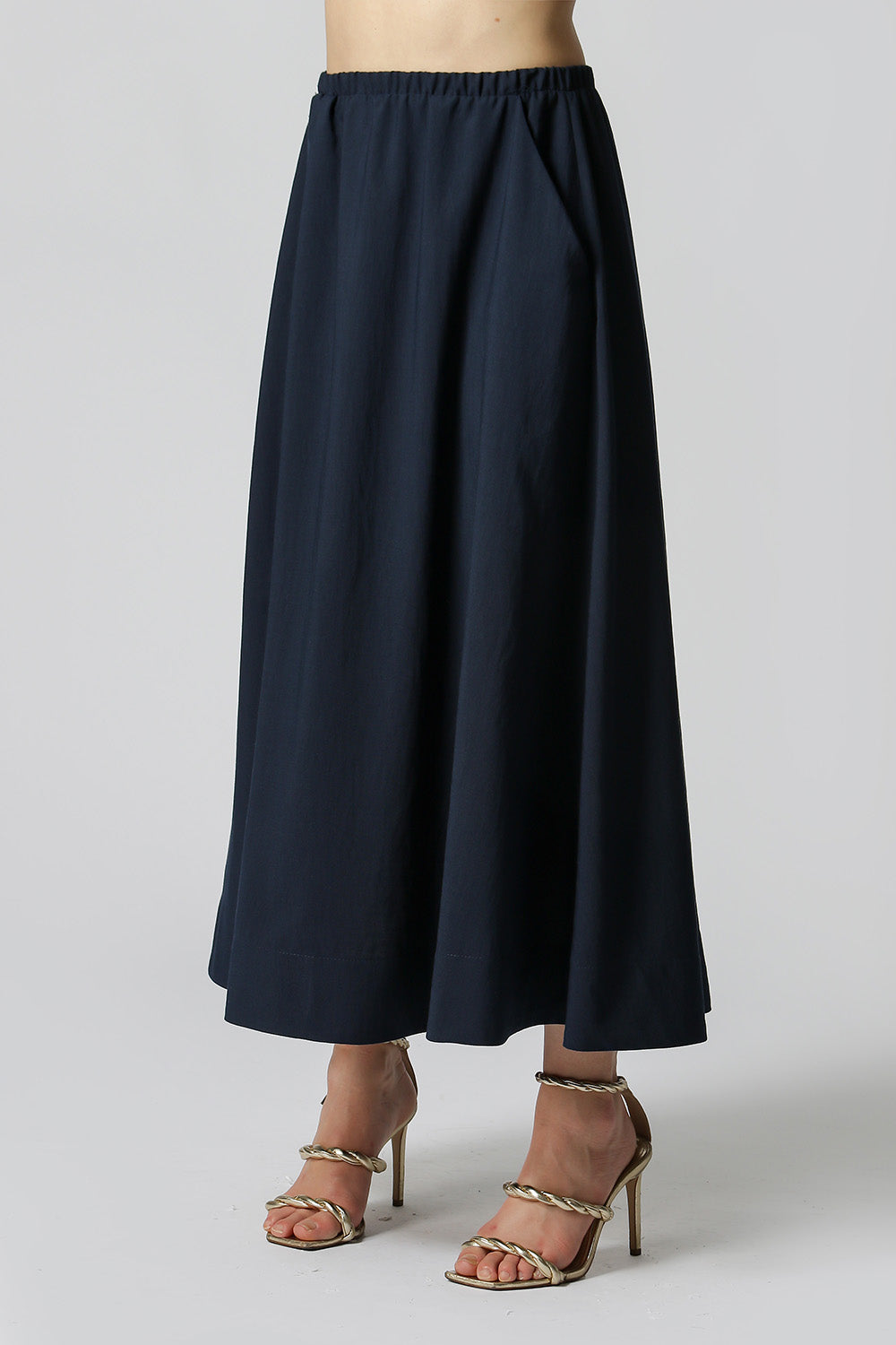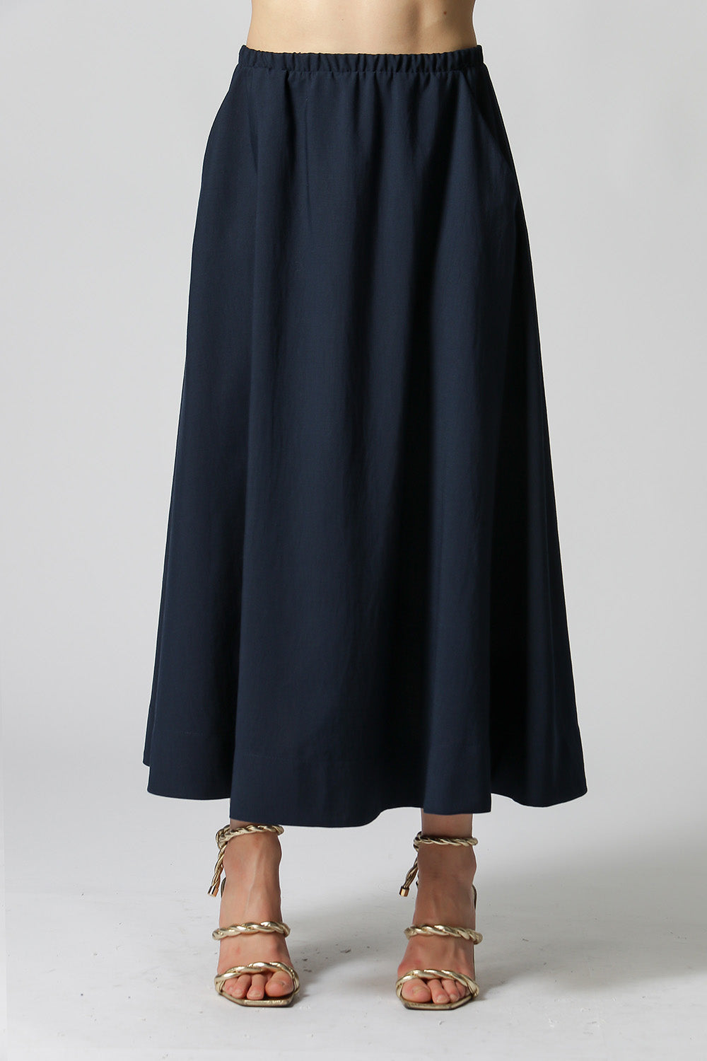 Falda de largo medio con elástico - AZUL MARINO