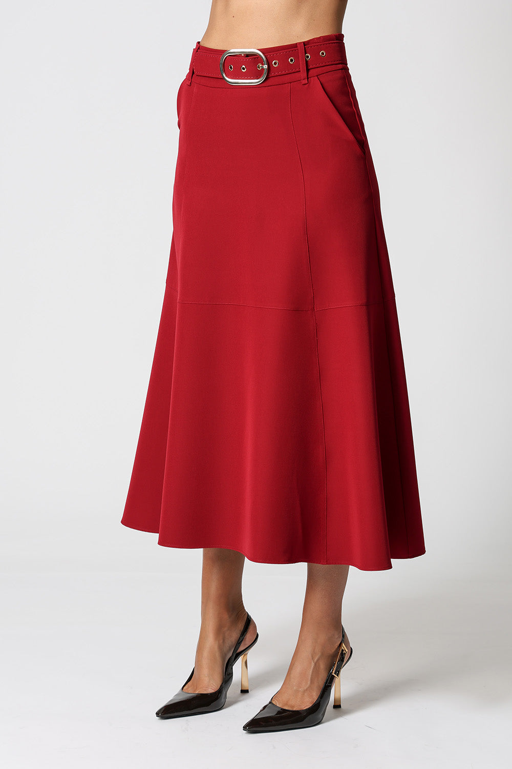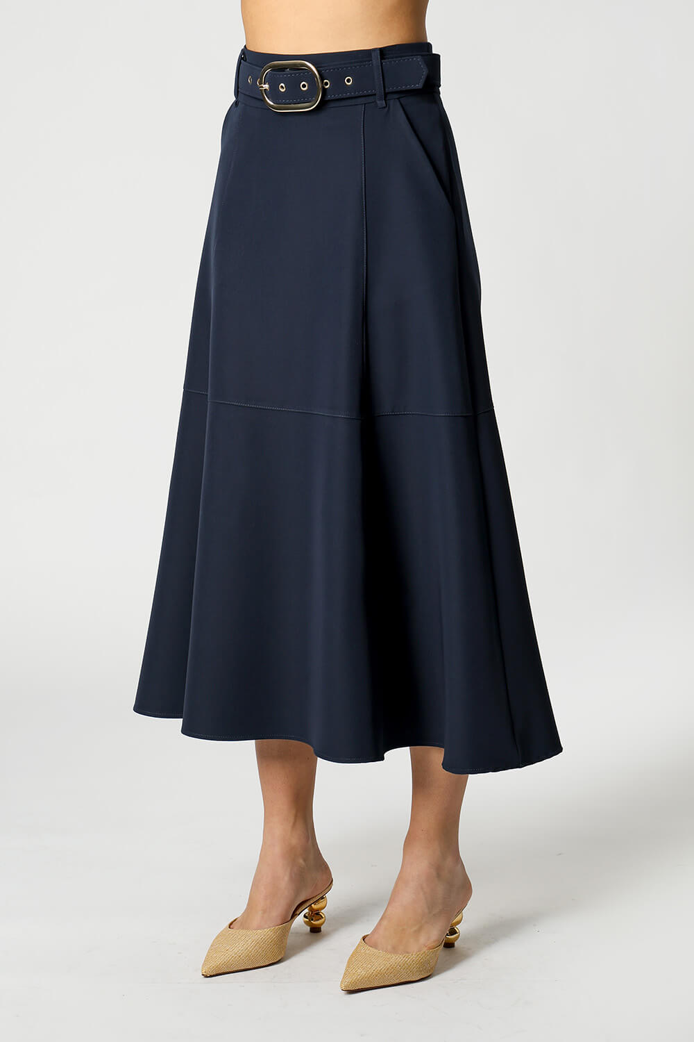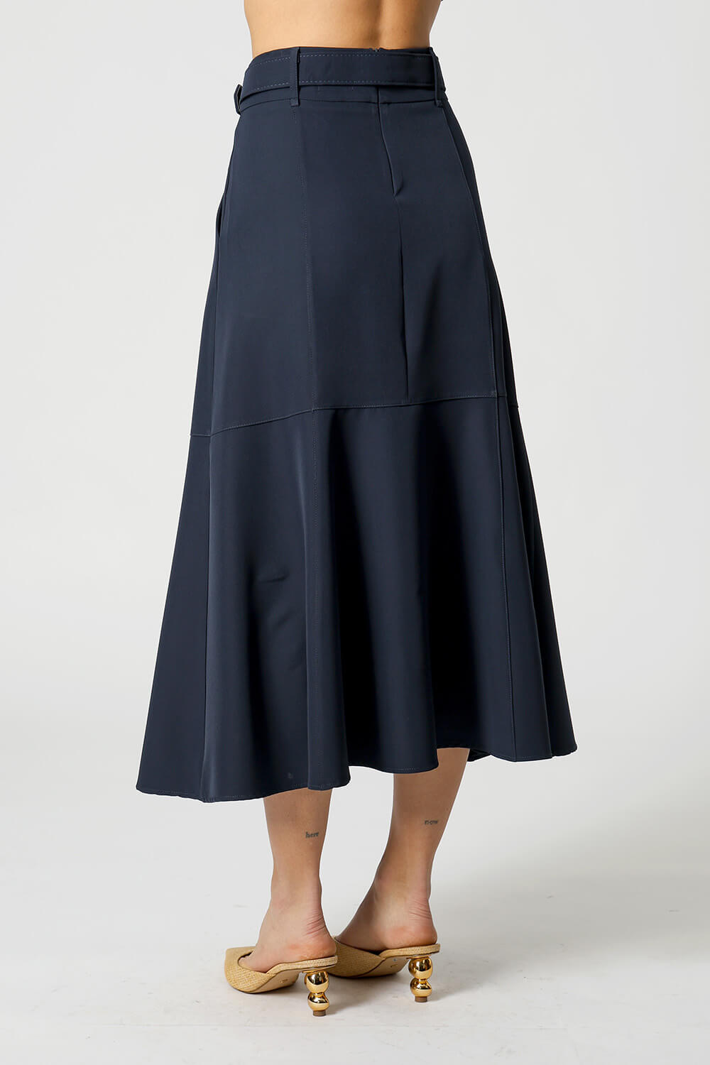 Saia midi com detalhes de recortes, uma peça elegante que te proporciona diversos looks para ocasiões especiais.