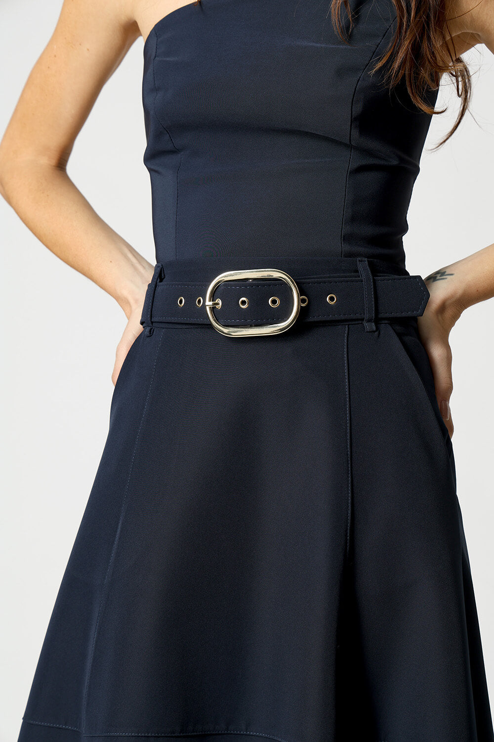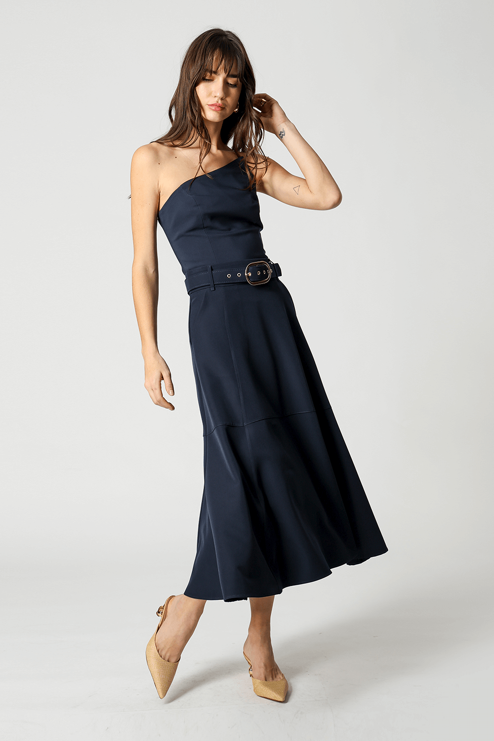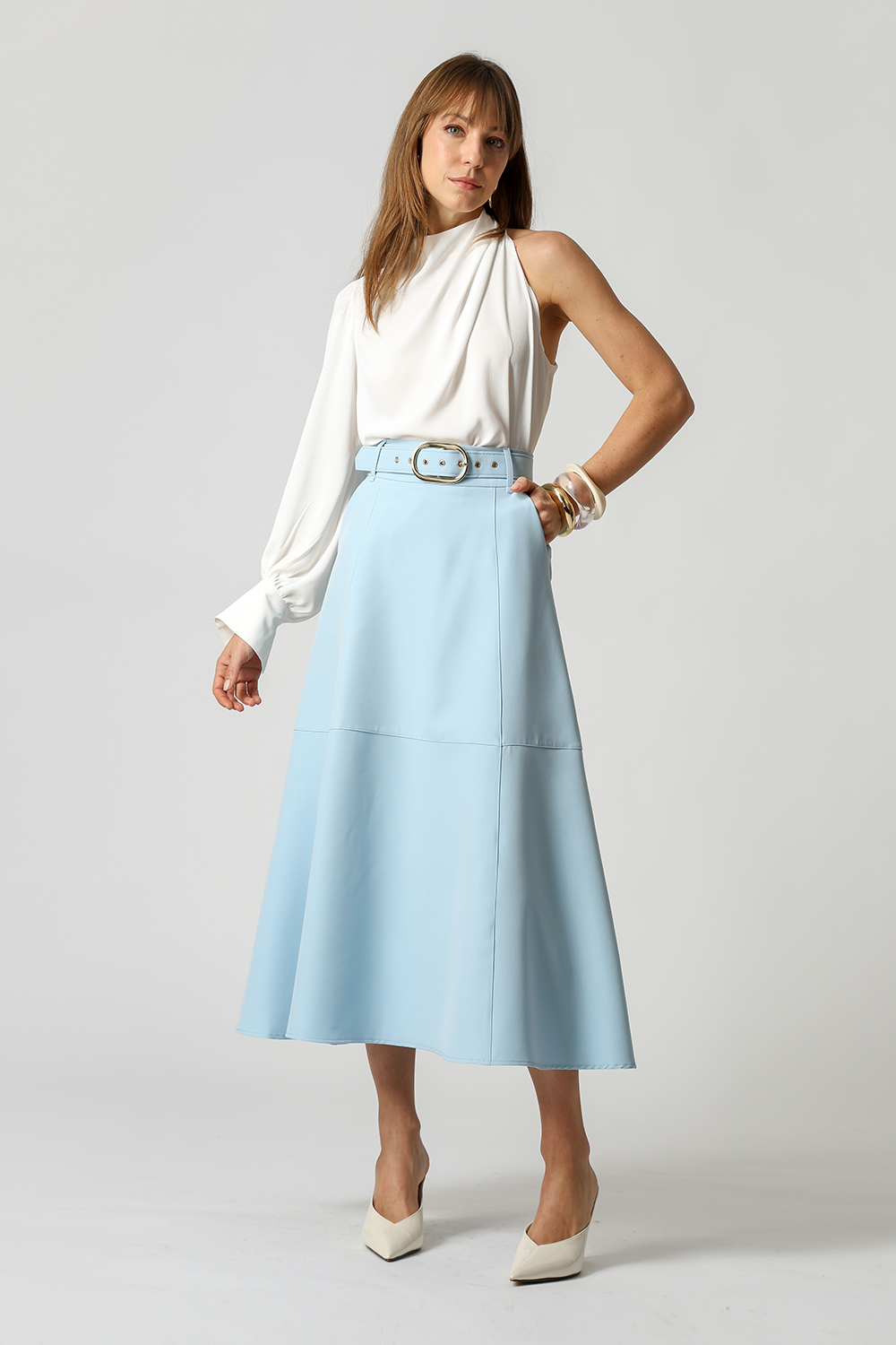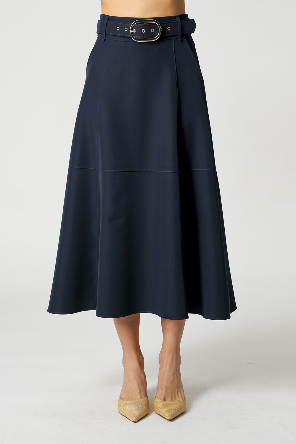 Saia midi com detalhes de recortes, uma peça elegante que te proporciona diversos looks para ocasiões especiais.