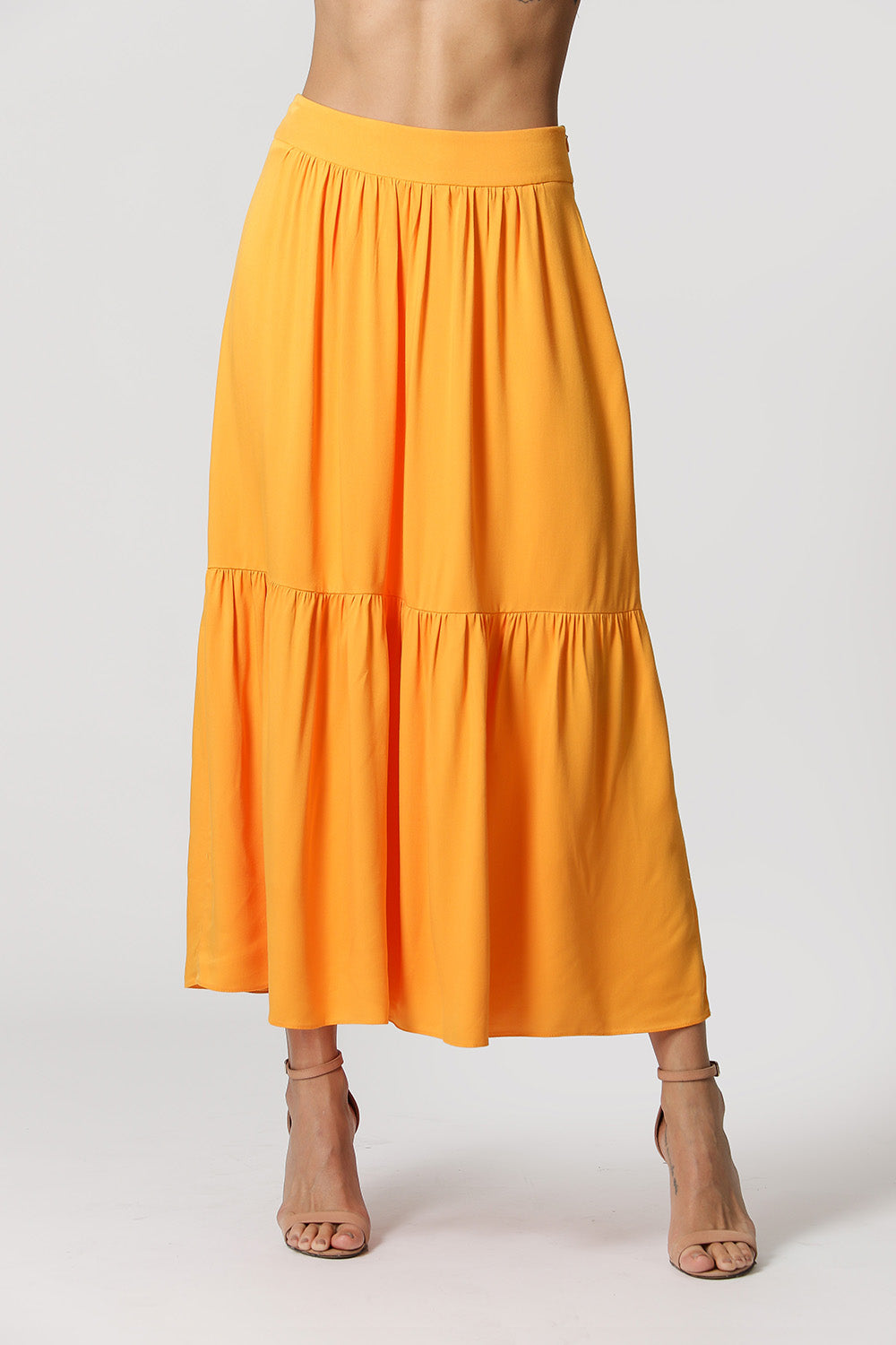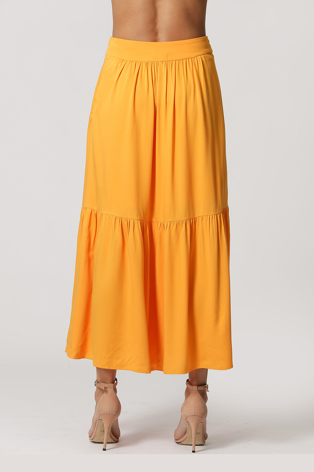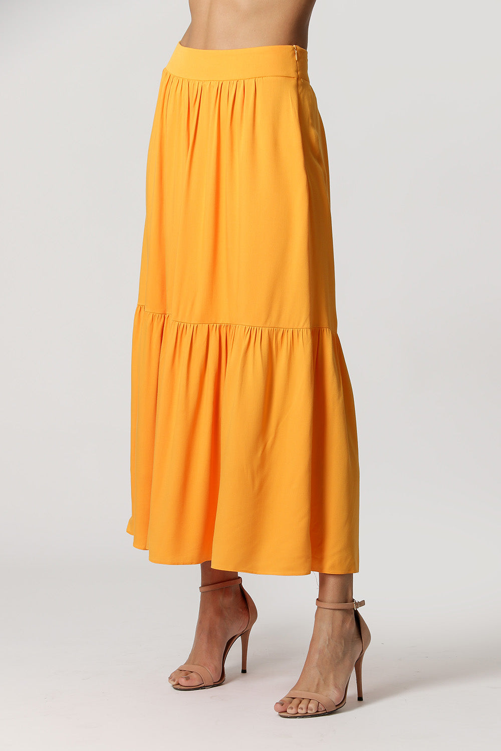 Falda midi con dobladillo. Tiene forro y cremallera invisible. Confeccionada en viscosa fluida, esta falda es fresca y delicada, perfecta para un look de verano cómodo sin perder el estilo.