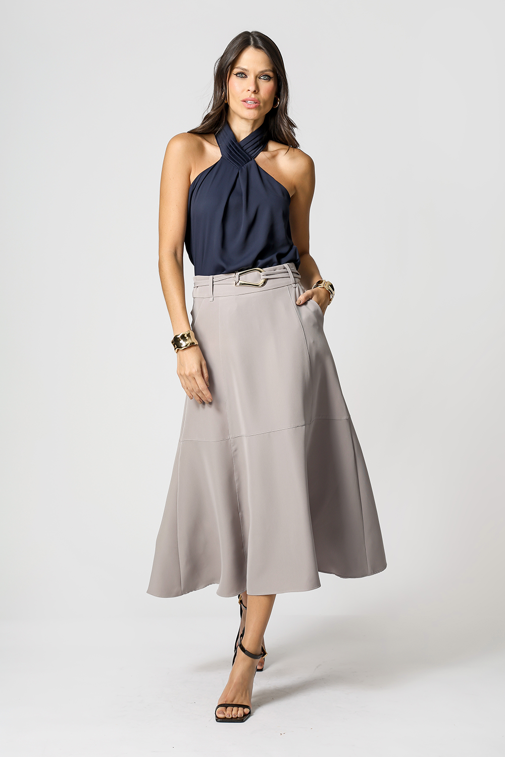 Falda midi con cinturón. Un modelo chic y elegante que realza el ambiente laboral.