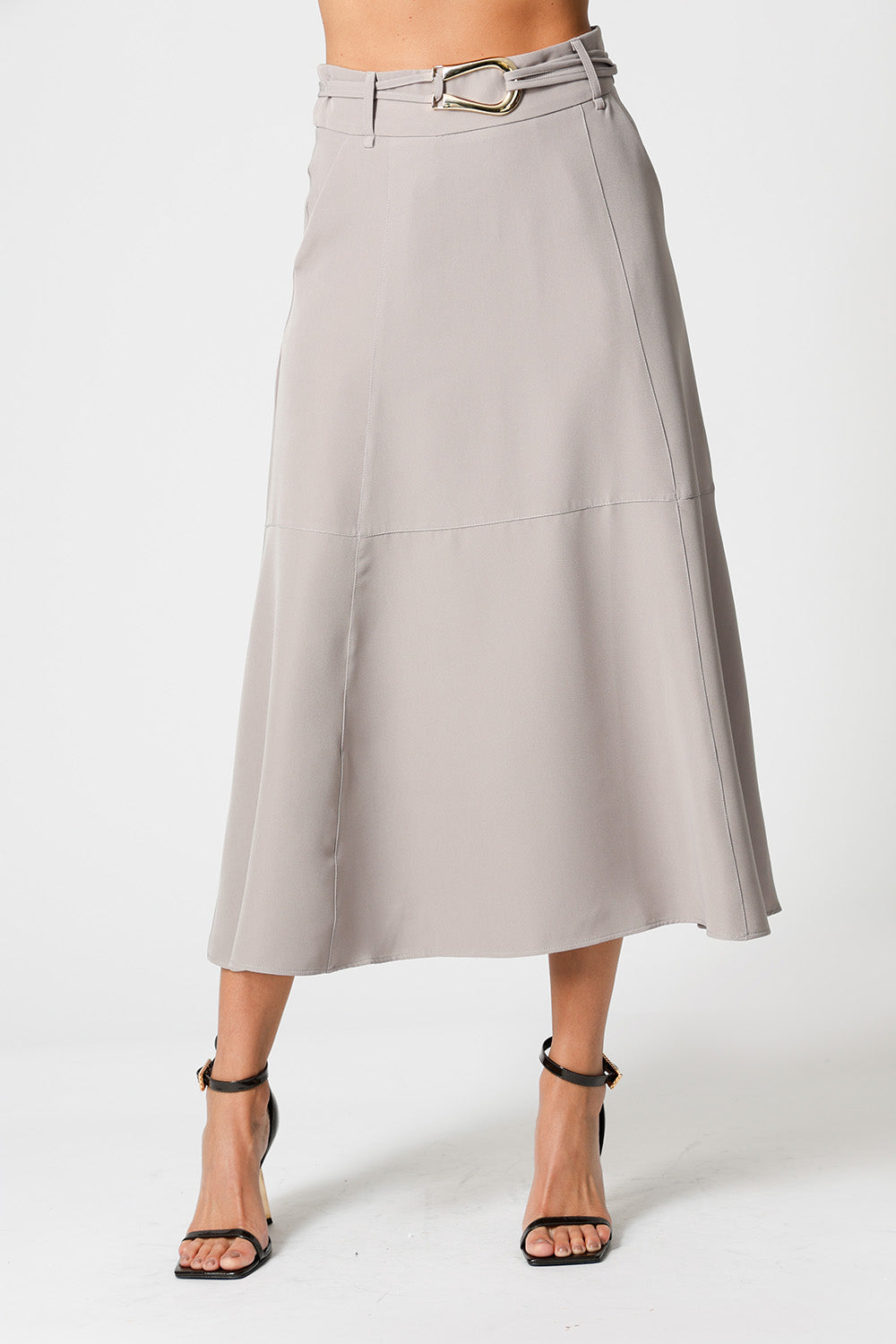 Falda midi con cinturón - GRIS
