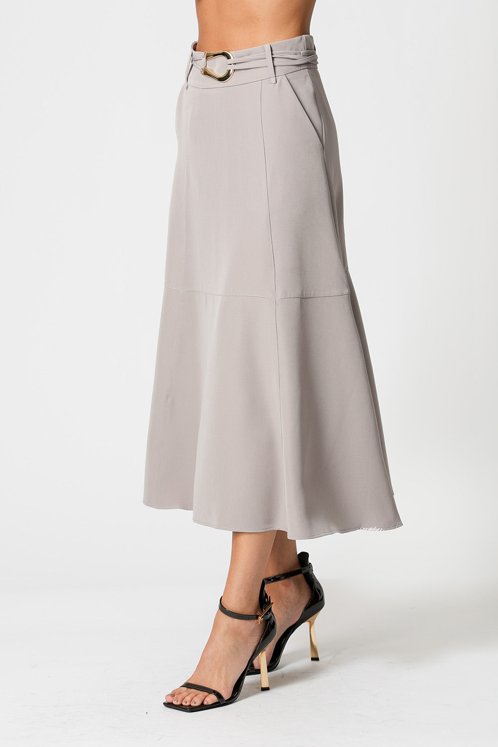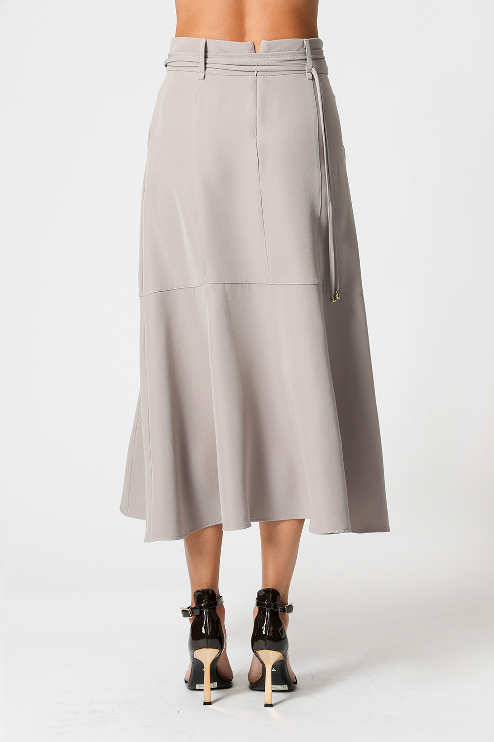 • Falda midi con cinturón - GRIS