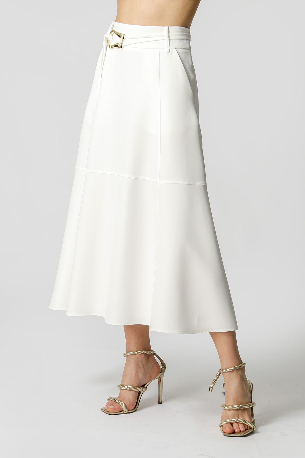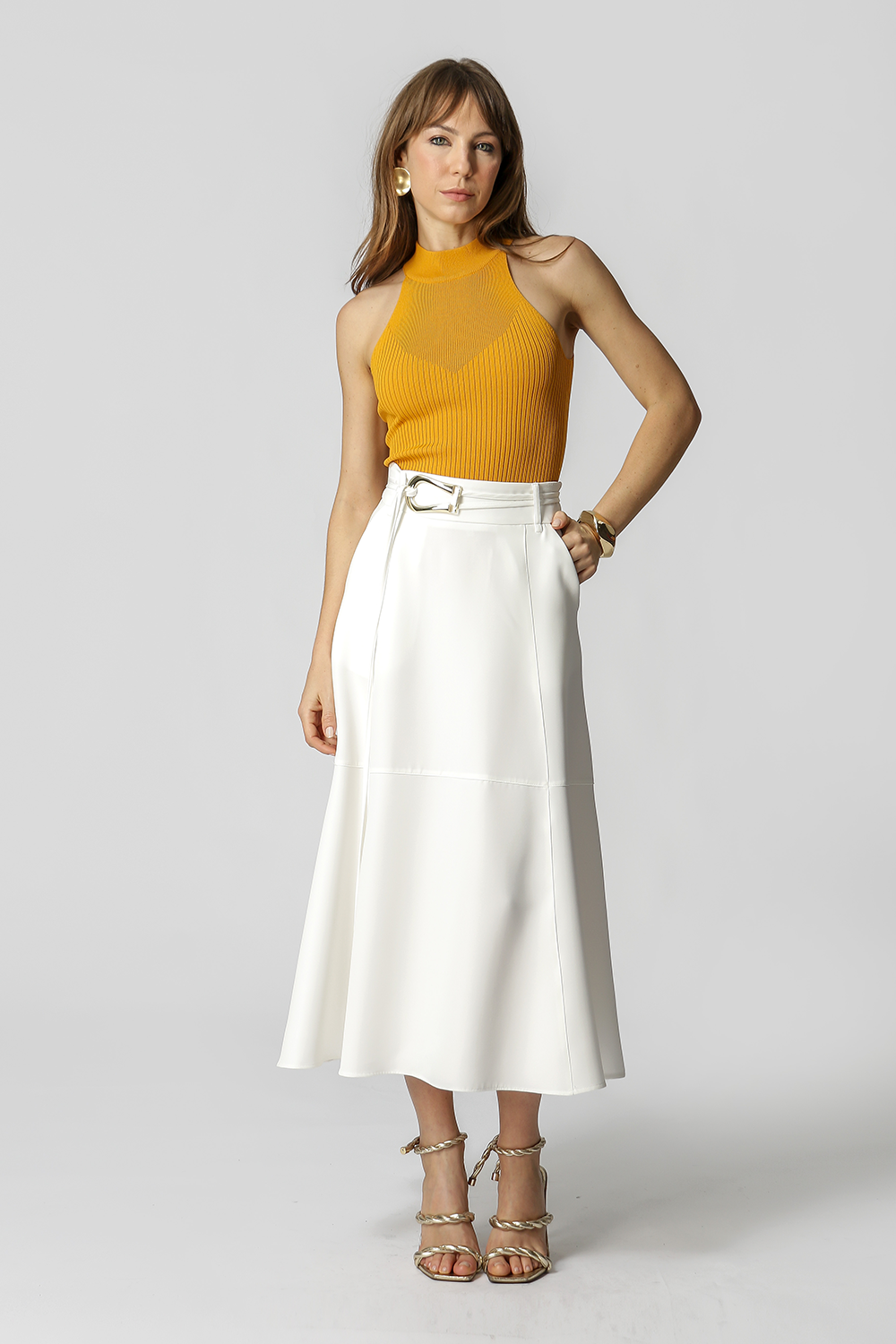 Falda midi con cinturón. Un modelo chic y elegante que realza el ambiente laboral.