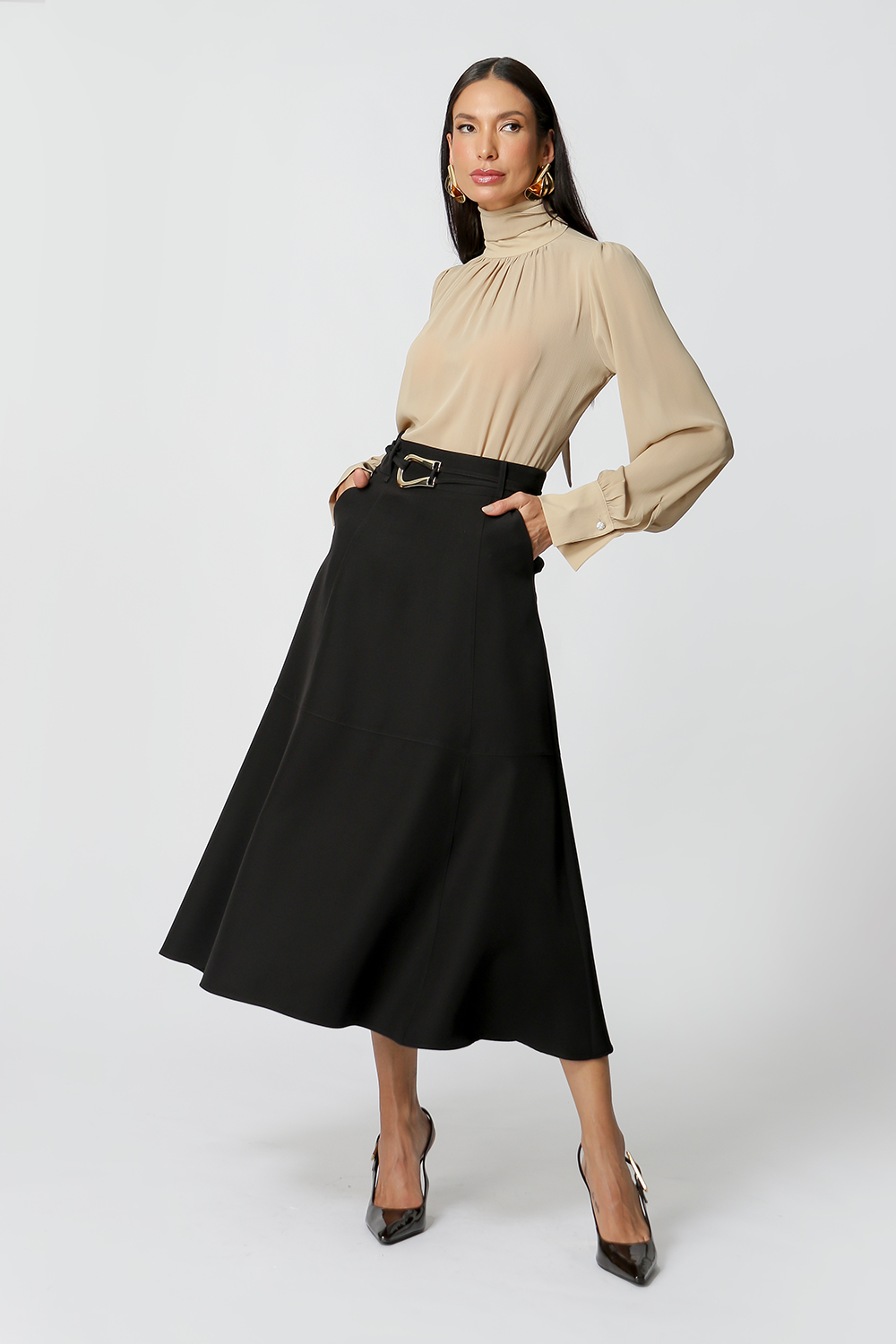 Falda midi con cinturón. Un modelo chic y elegante que realza el ambiente laboral.