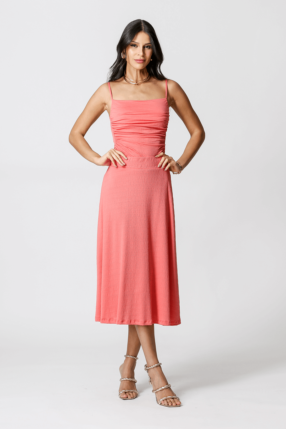 • Falda midi con cinturilla elástica - CORAL