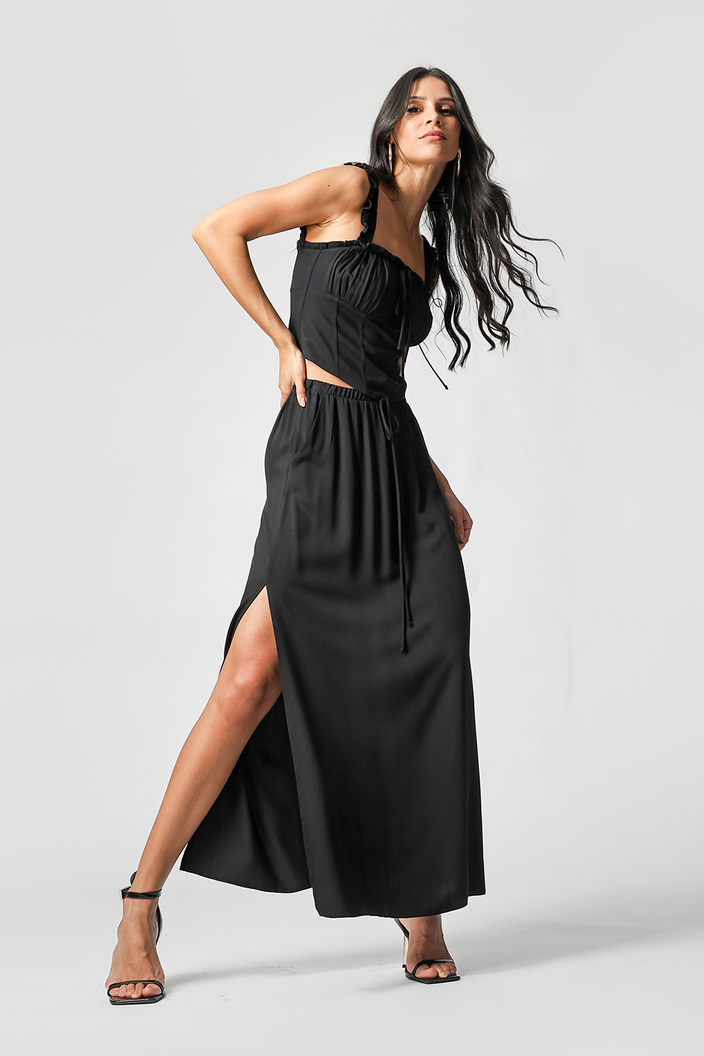 Falda midi con abertura lateral, cinturilla elástica, modelo casual que te permite crear diferentes looks casual.