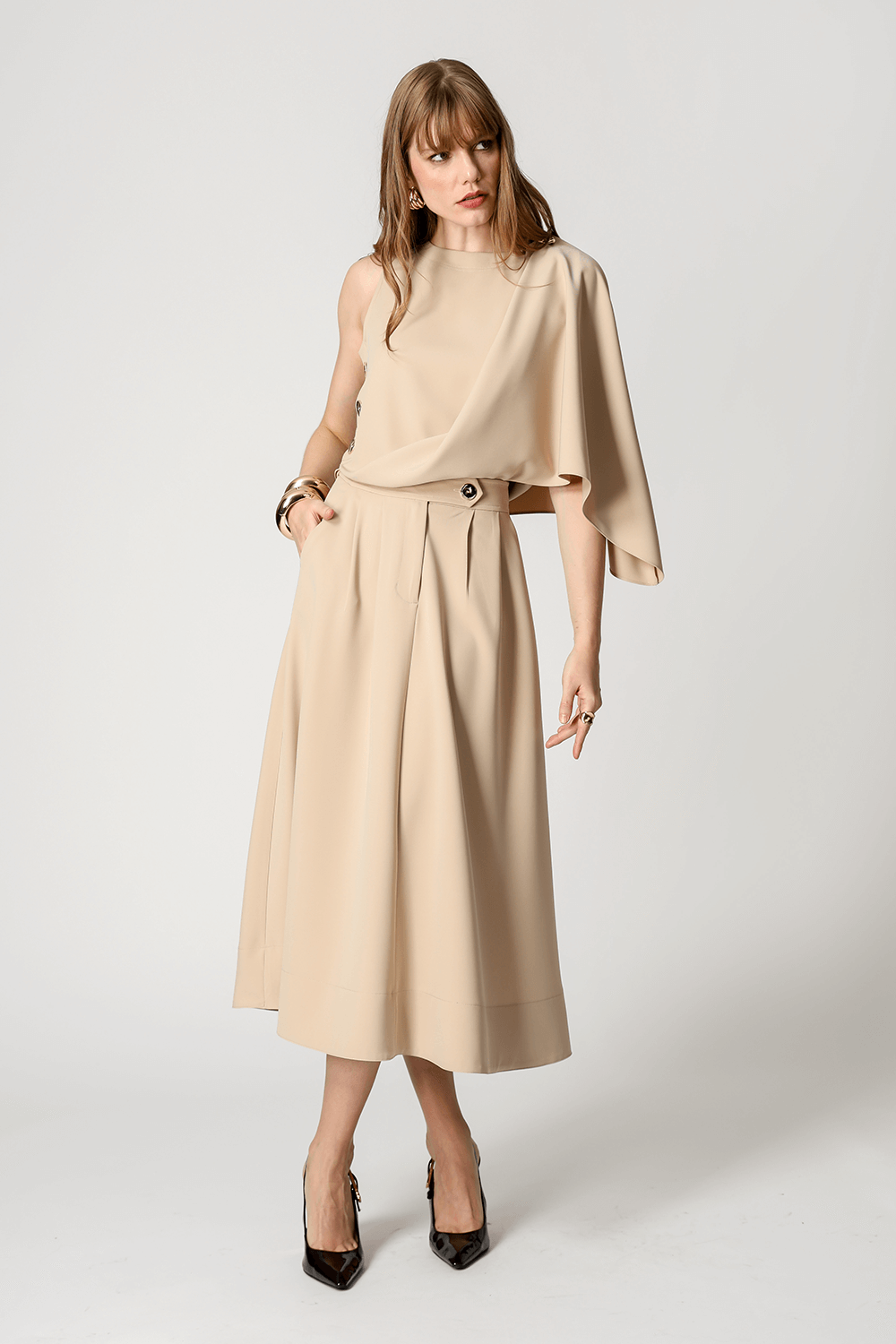 Elegante e versátil, a saia midi com pregas é a escolha perfeita para quem busca sofisticação com um toque contemporâneo. Essa peça garante caimento impecável e conforto ao vestir. Ideal para compor looks formais ou elevar produções casuais com um toque chic.