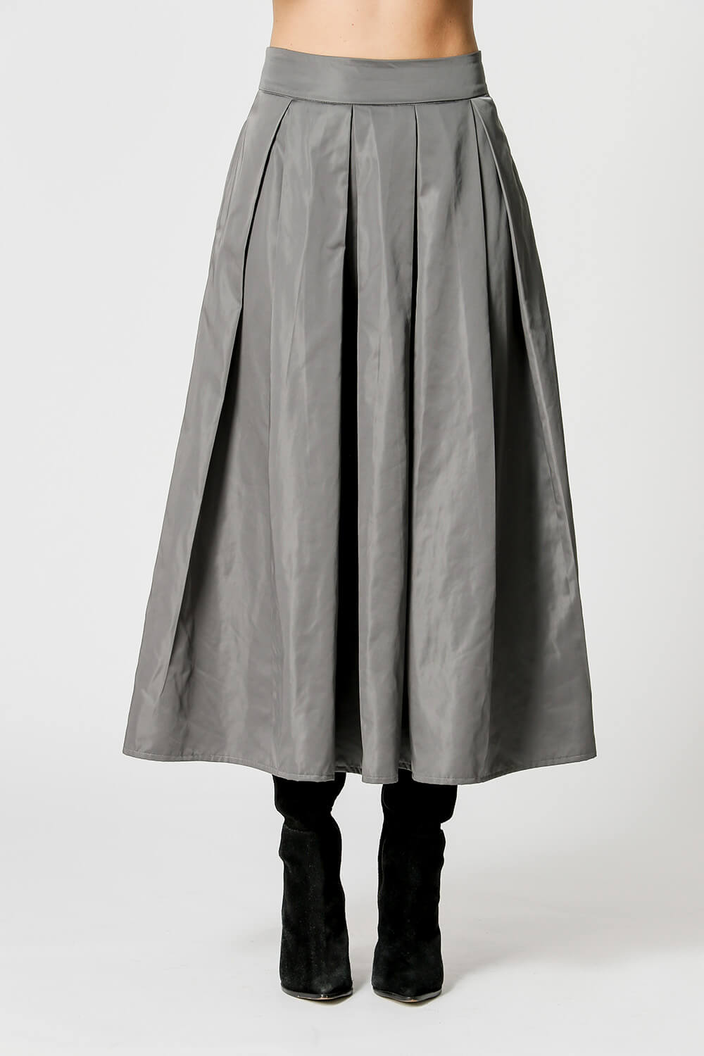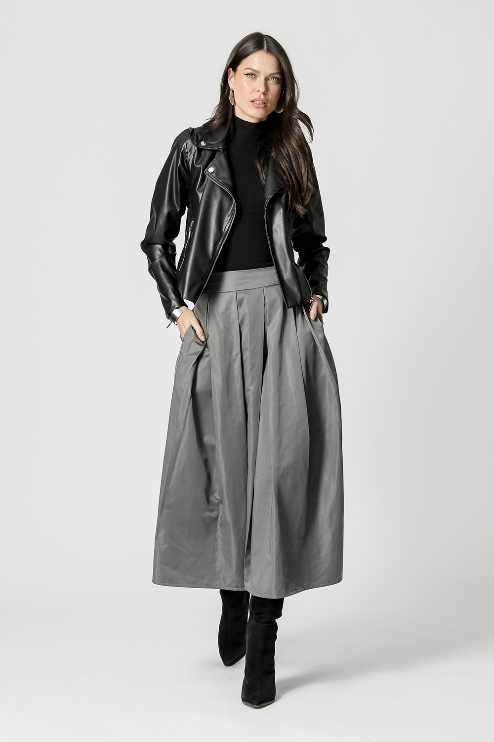 Falda Midi Evasé con Pliegues, modelo ideal para lucir looks casual.