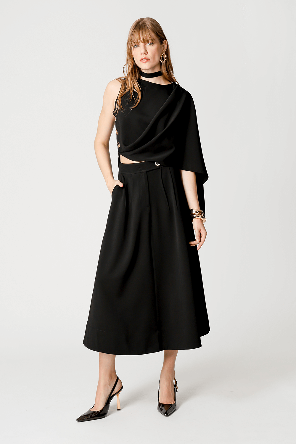 Elegante e versátil, a saia midi com pregas é a escolha perfeita para quem busca sofisticação com um toque contemporâneo. Essa peça garante caimento impecável e conforto ao vestir. Ideal para compor looks formais ou elevar produções casuais com um toque chic.