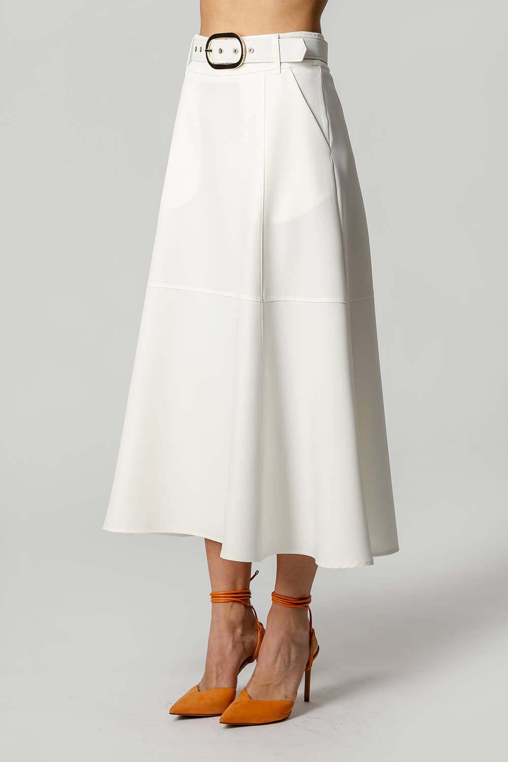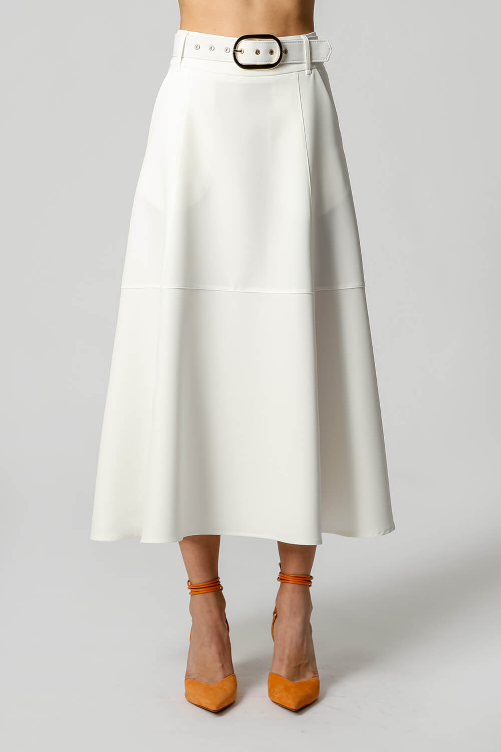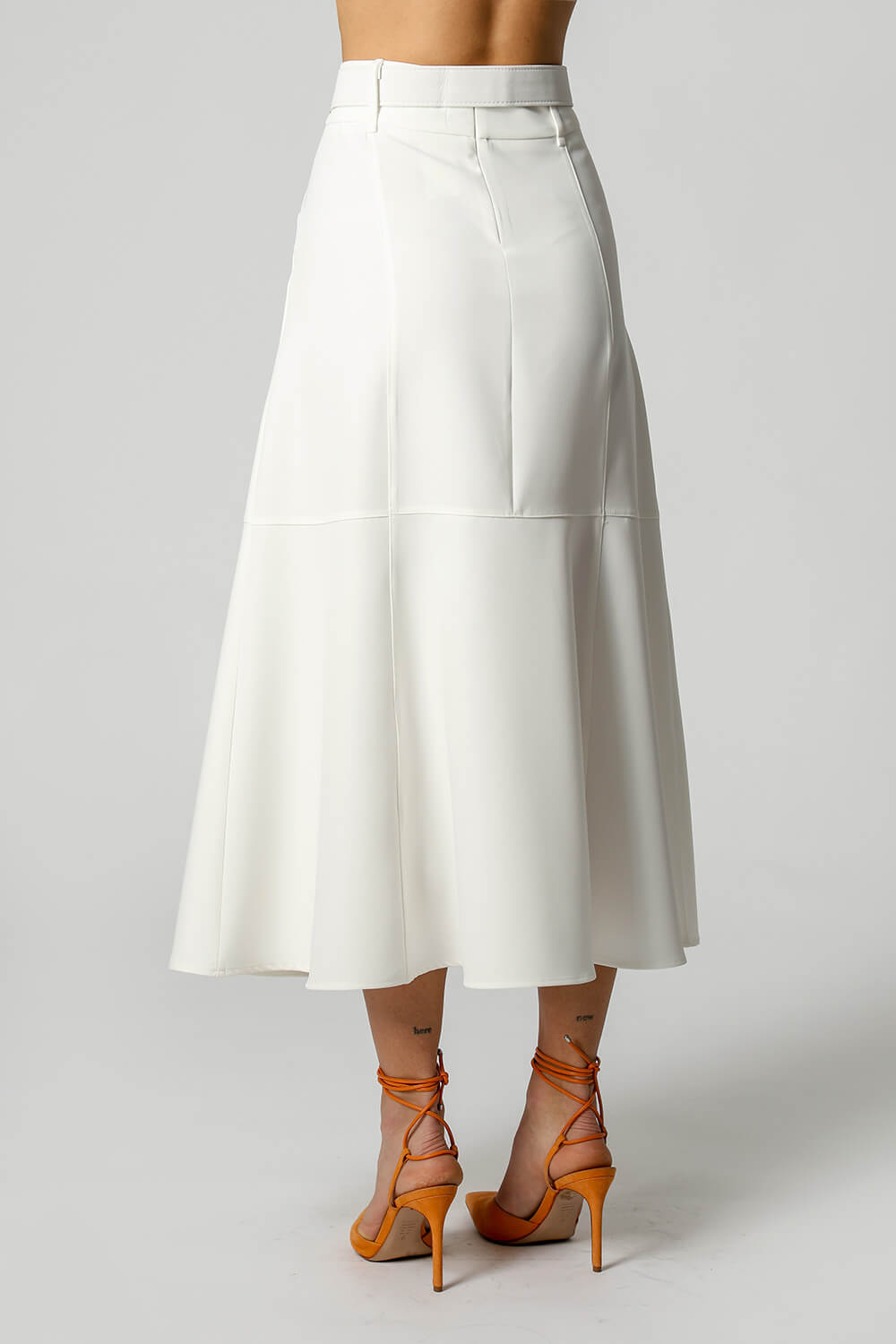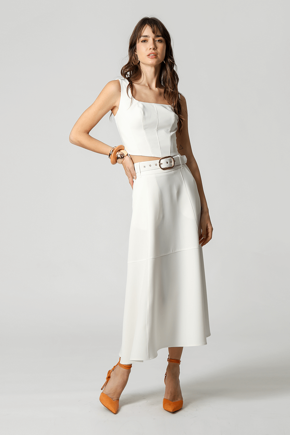 Saia midi com detalhes de recortes, uma peça elegante que te proporciona diversos looks para ocasiões especiais.
