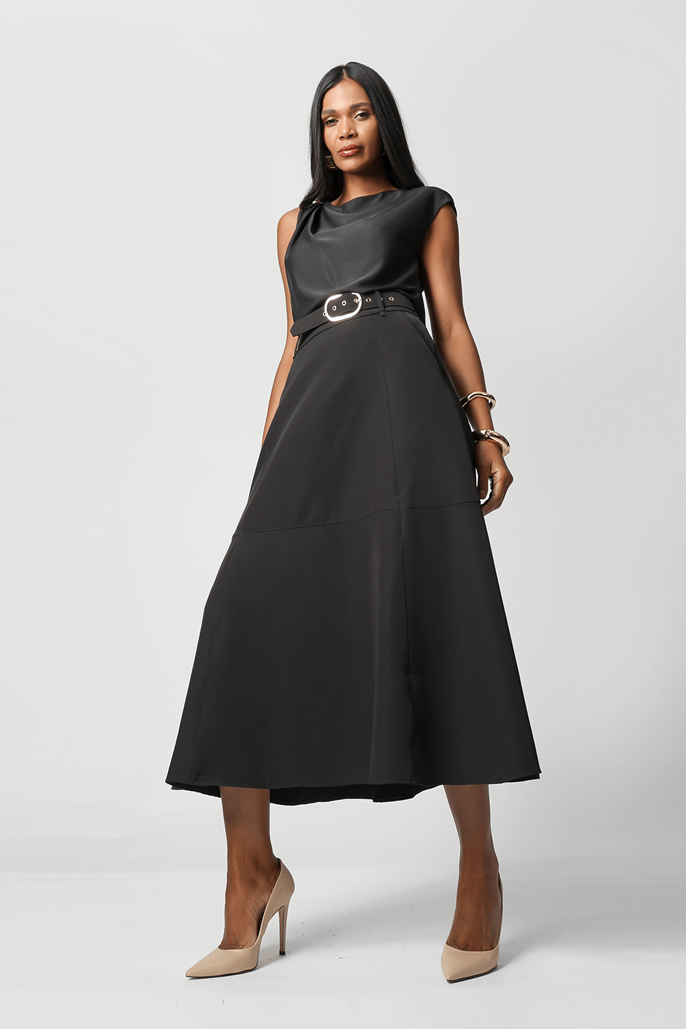 Falda midi con detalles cut out, una pieza elegante que te aporta looks diferentes para ocasiones especiales.