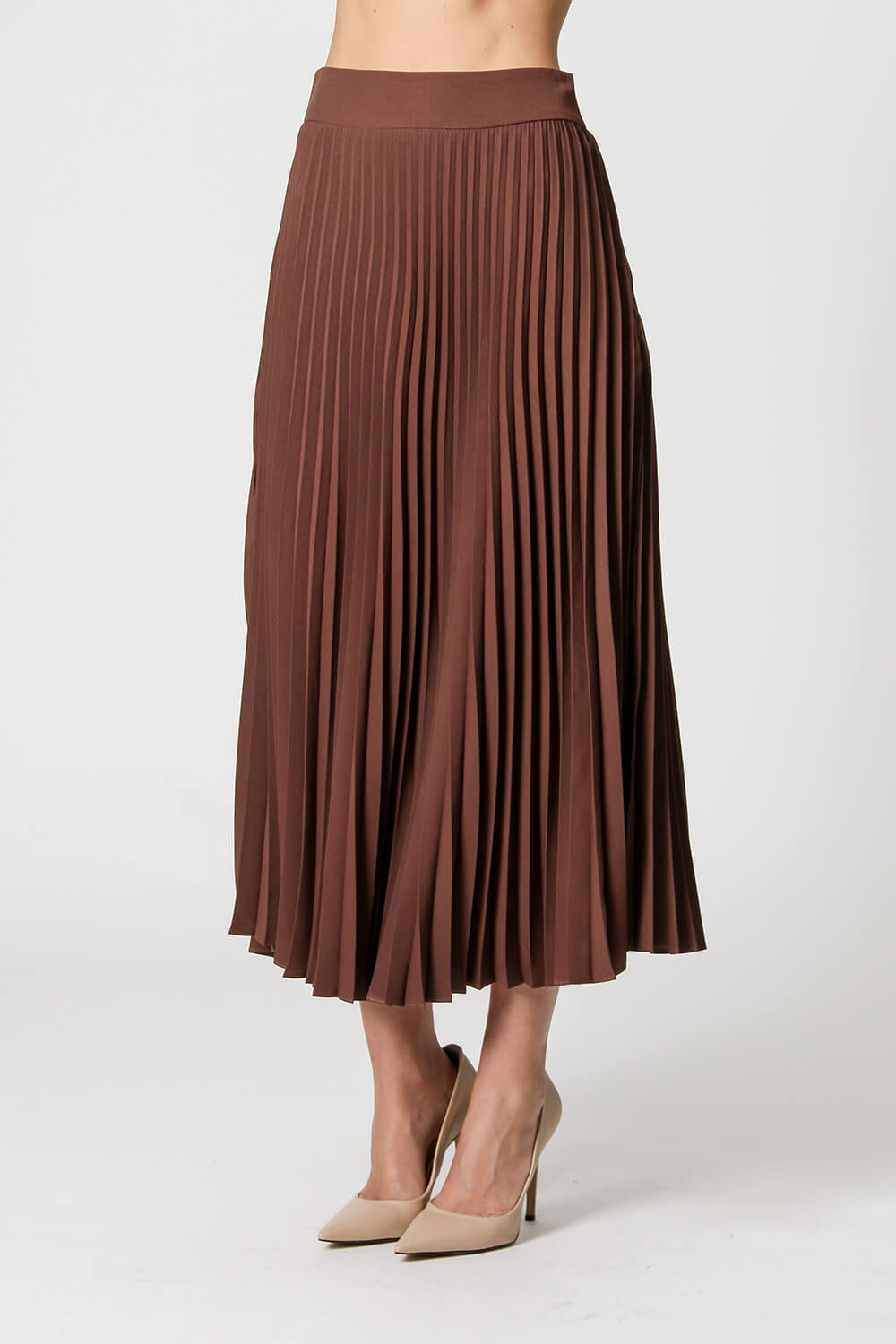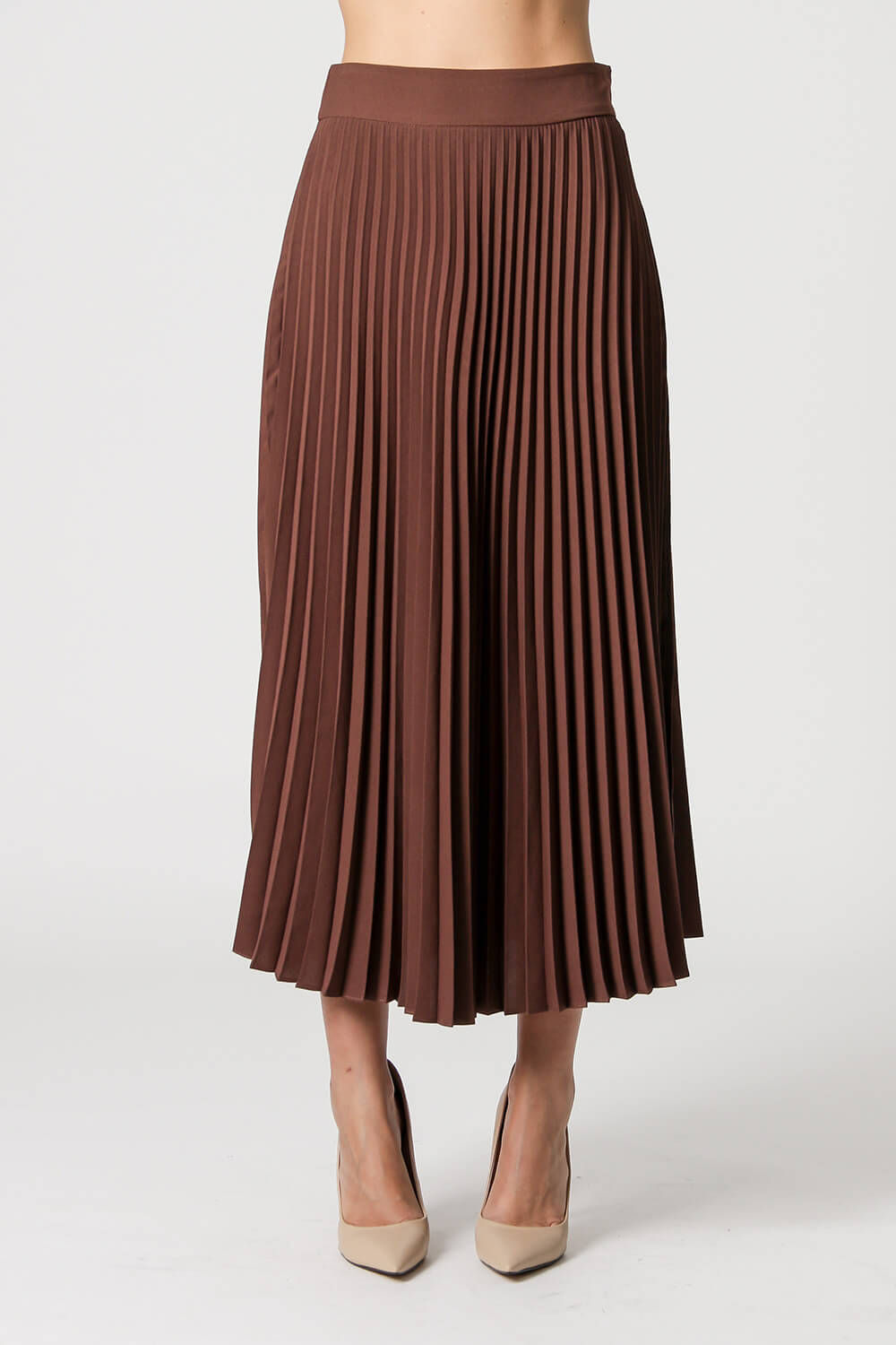 Falda midi plisada con cremallera lateral. Fabricado en tejido crepé fluido. Un modelo súper elegante para complementar tus looks casuales.