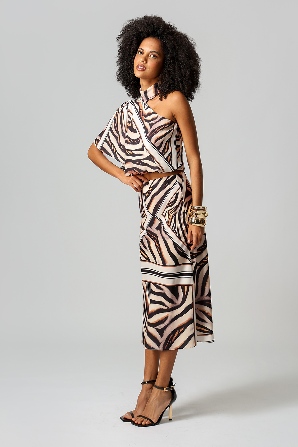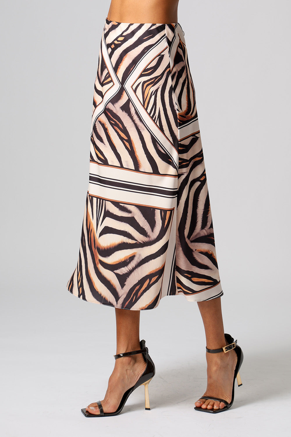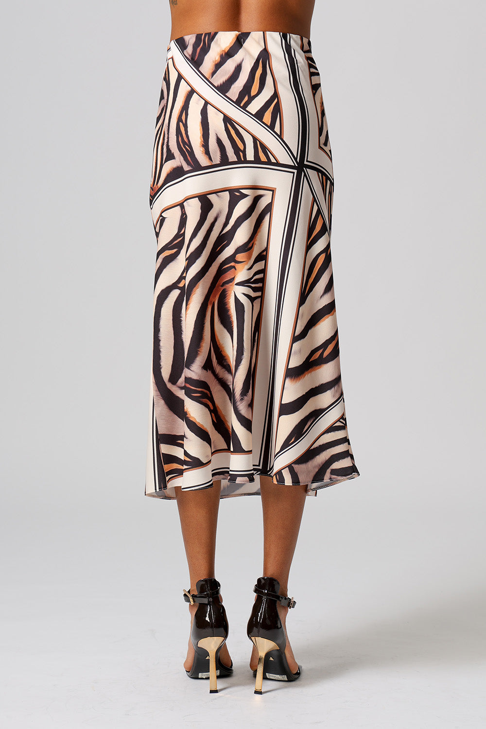 Saia midi modelo sereia em crepe twill com estampa exclusiva. Modelagem que valoriza a silhueta com caimento fluido e toque sofisticado. Perfeita para compor looks elegantes e versáteis.