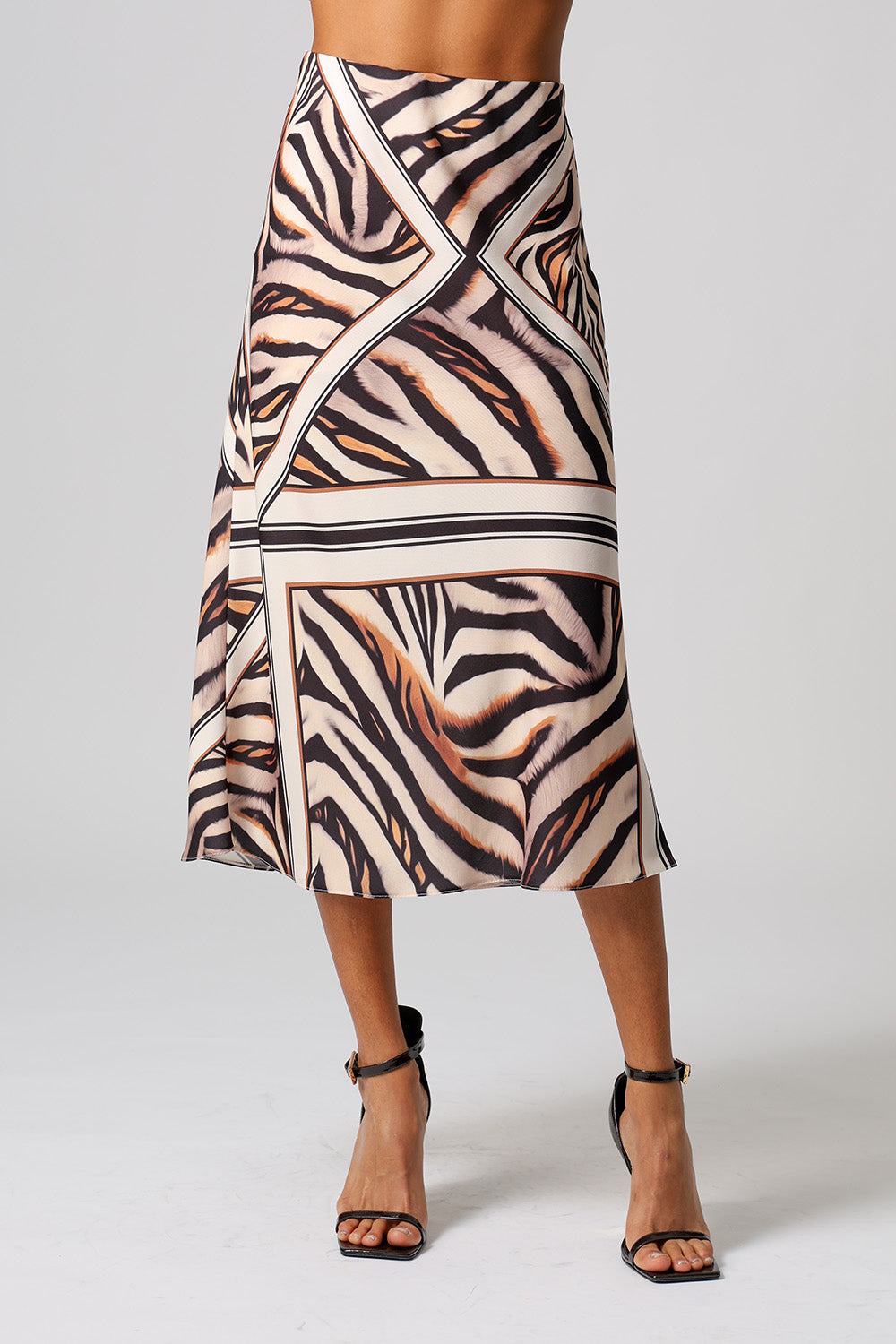 Saia midi modelo sereia em crepe twill com estampa exclusiva. Modelagem que valoriza a silhueta com caimento fluido e toque sofisticado. Perfeita para compor looks elegantes e versáteis.
