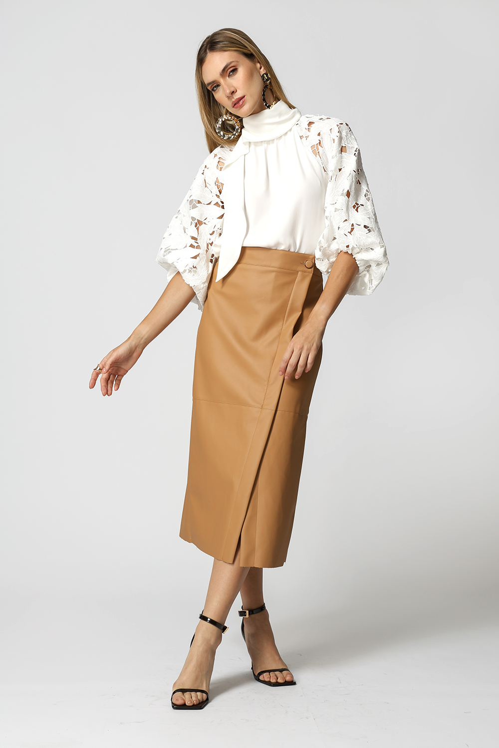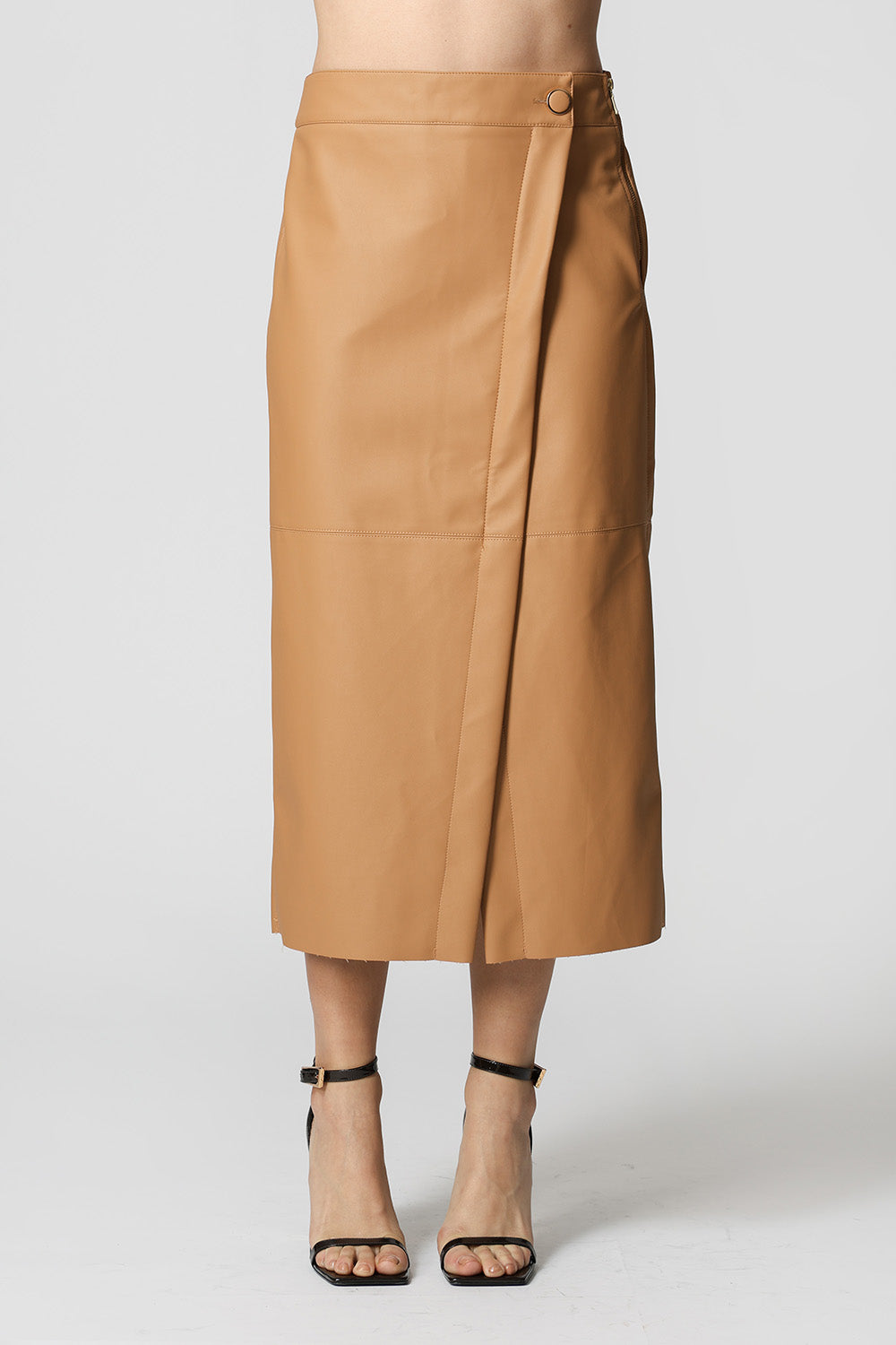 Falda cruzada con abertura, el diseño moderno y la abertura estratégica añaden un toque de sensualidad y sofisticación, perfecta para crear looks elegantes o más casuales, esta falda es ideal para quienes buscan versatilidad y estilo en una sola pieza.