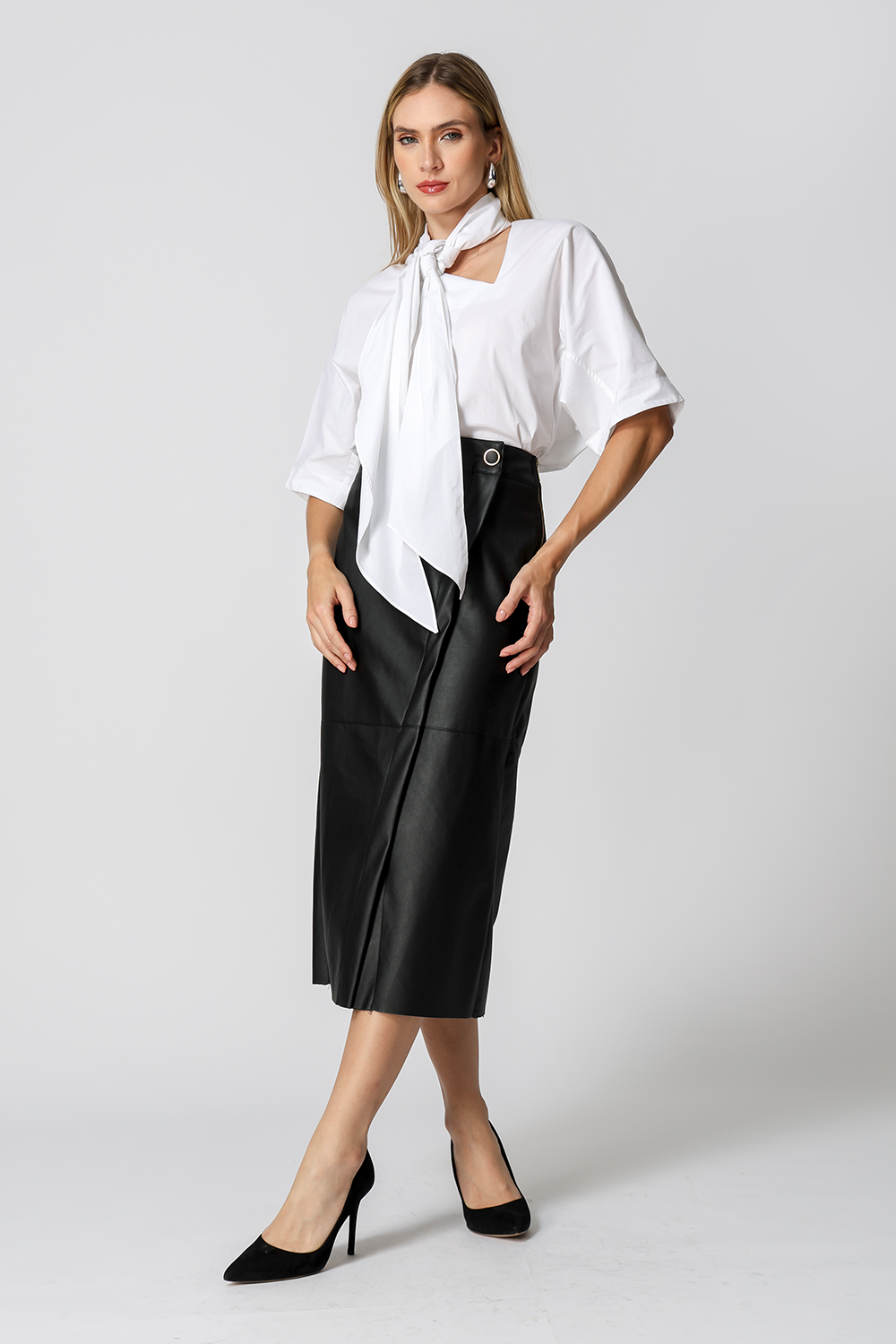 Falda cruzada con abertura, el diseño moderno y la abertura estratégica añaden un toque de sensualidad y sofisticación, perfecta para crear looks elegantes o más casuales, esta falda es ideal para quienes buscan versatilidad y estilo en una sola pieza.