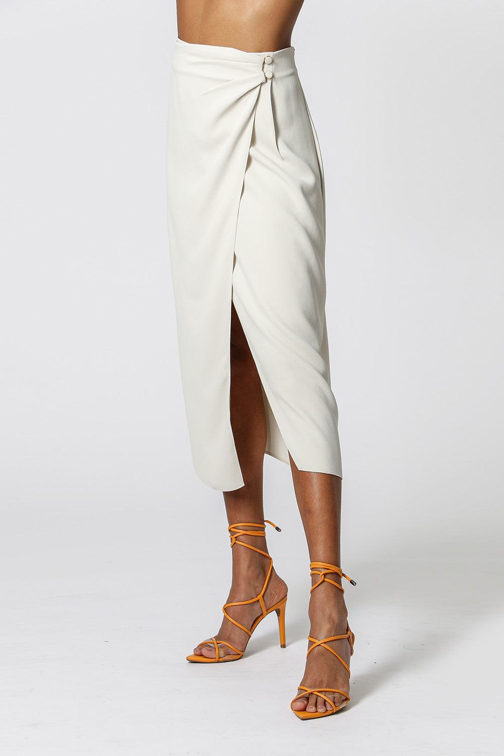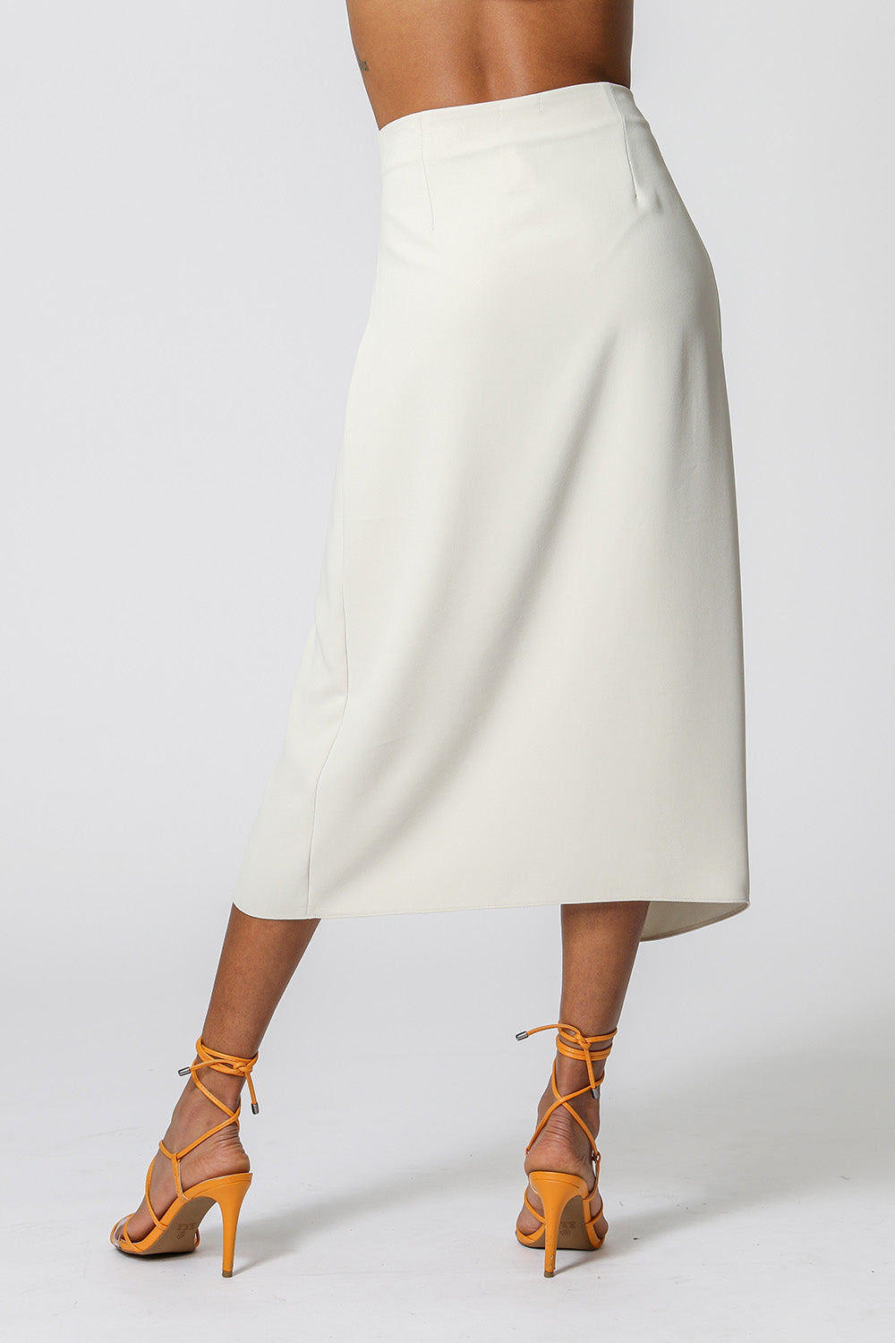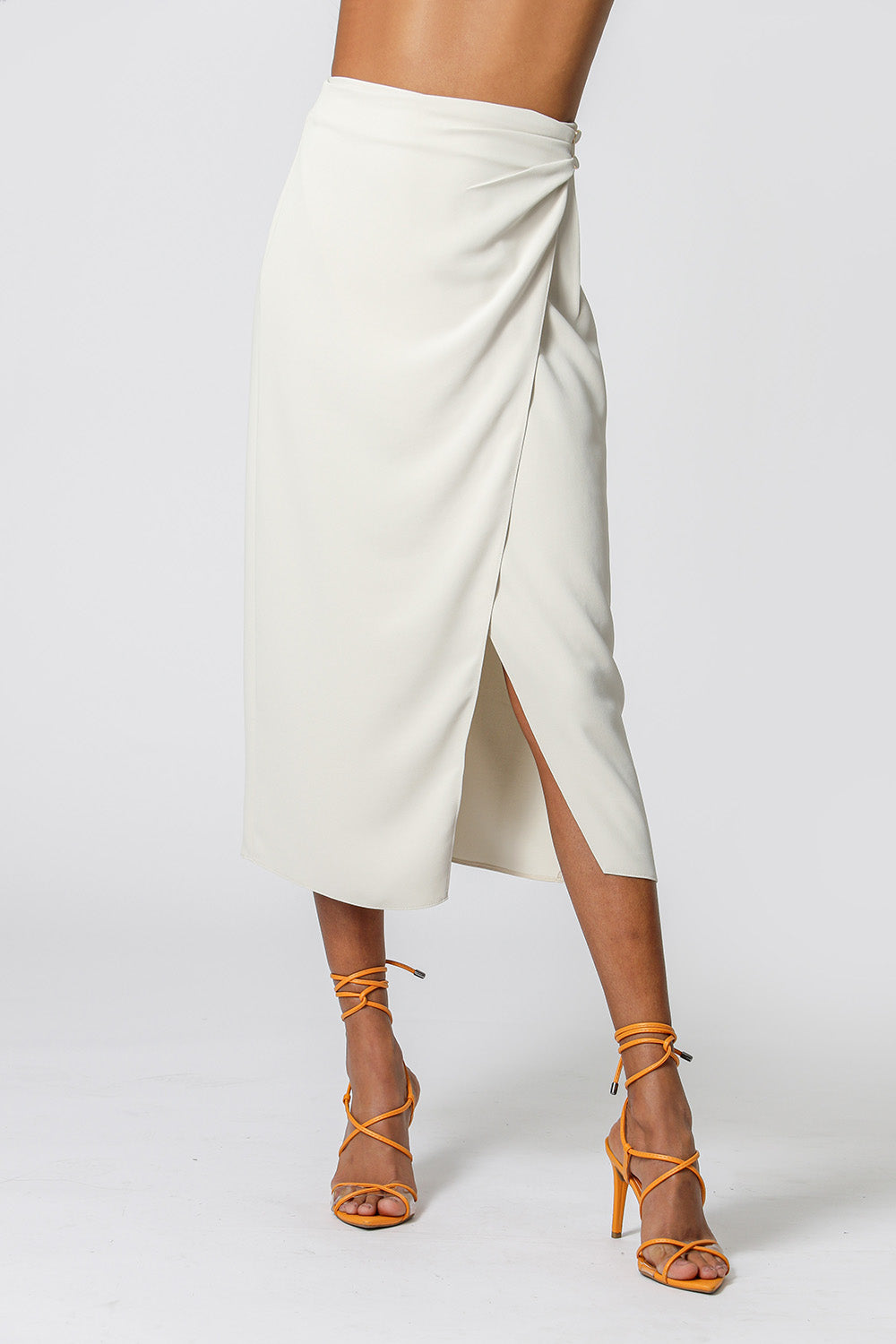 Falda midi cruzada con pliegues en la parte delantera, confeccionada en crepe. ¡Una pieza elegante para que la lleves sin miedo!