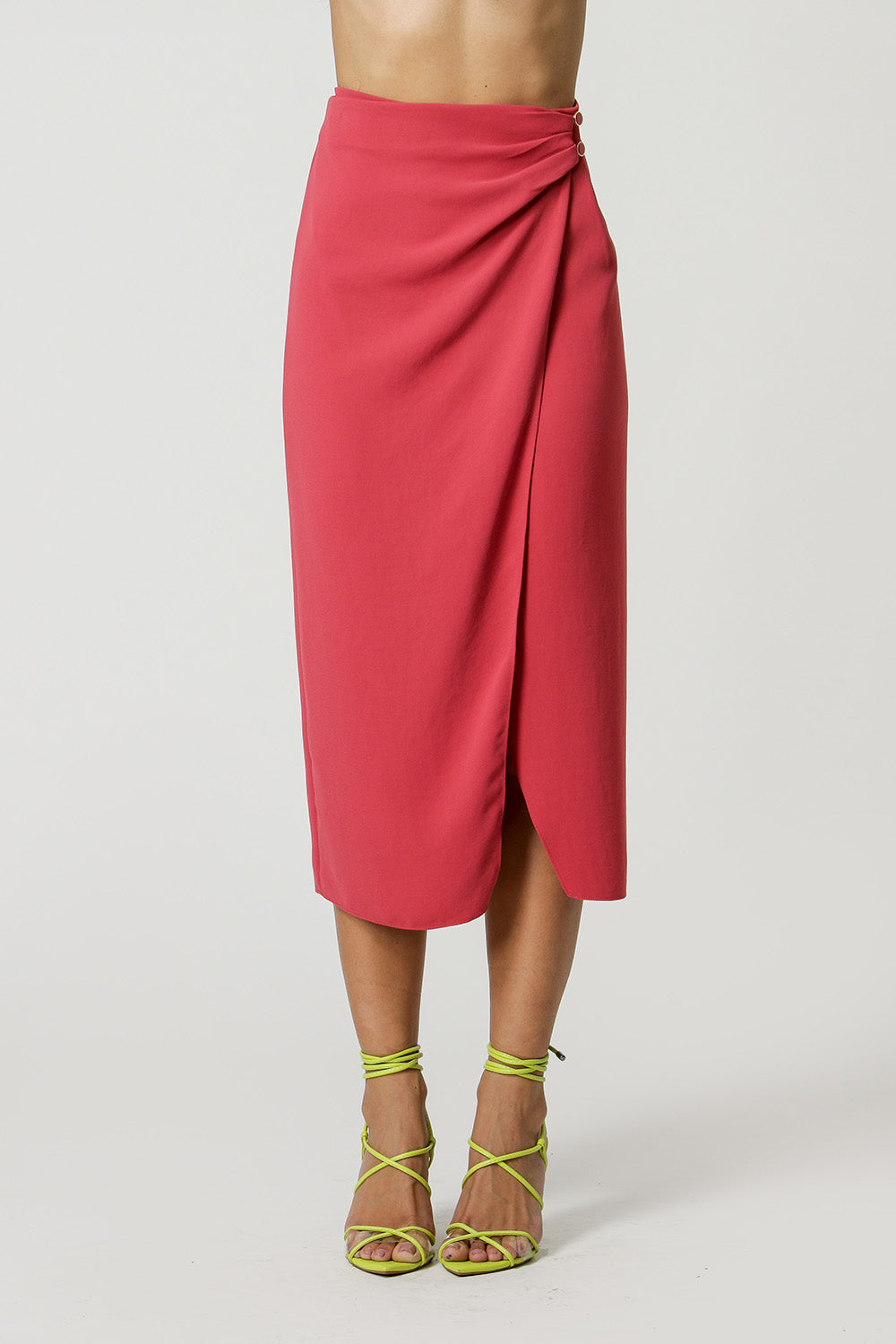Falda midi cruzada con pliegues en la parte delantera, confeccionada en crepe. ¡Una pieza elegante para que la lleves sin miedo!