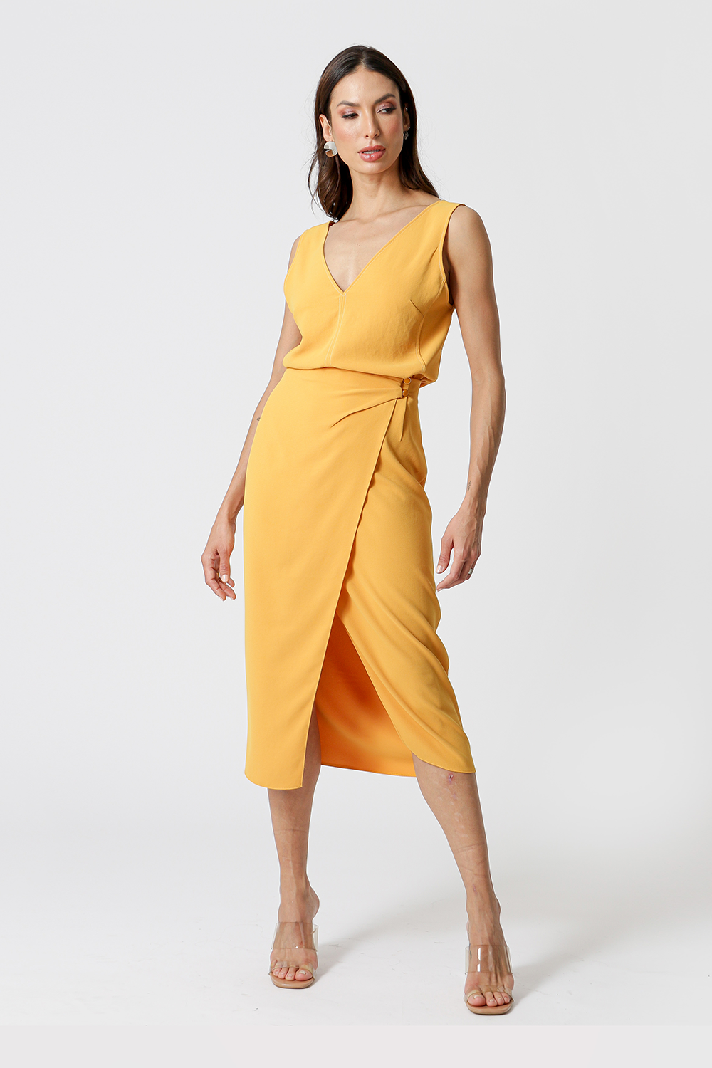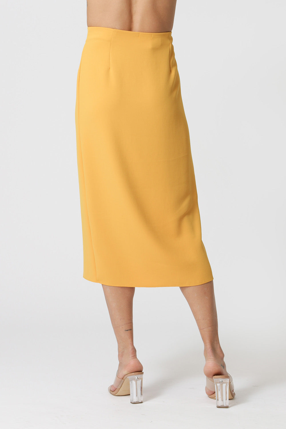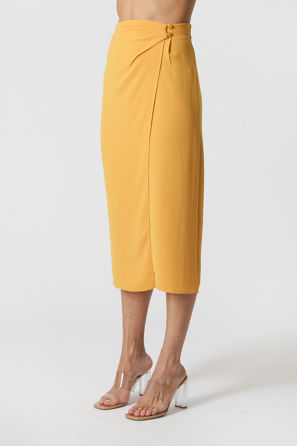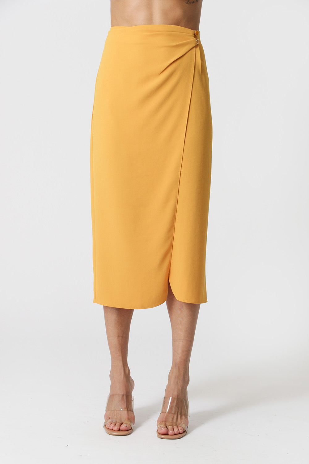 Falda midi cruzada con pliegues en la parte delantera, confeccionada en crepe. ¡Una pieza elegante para que la lleves sin miedo!